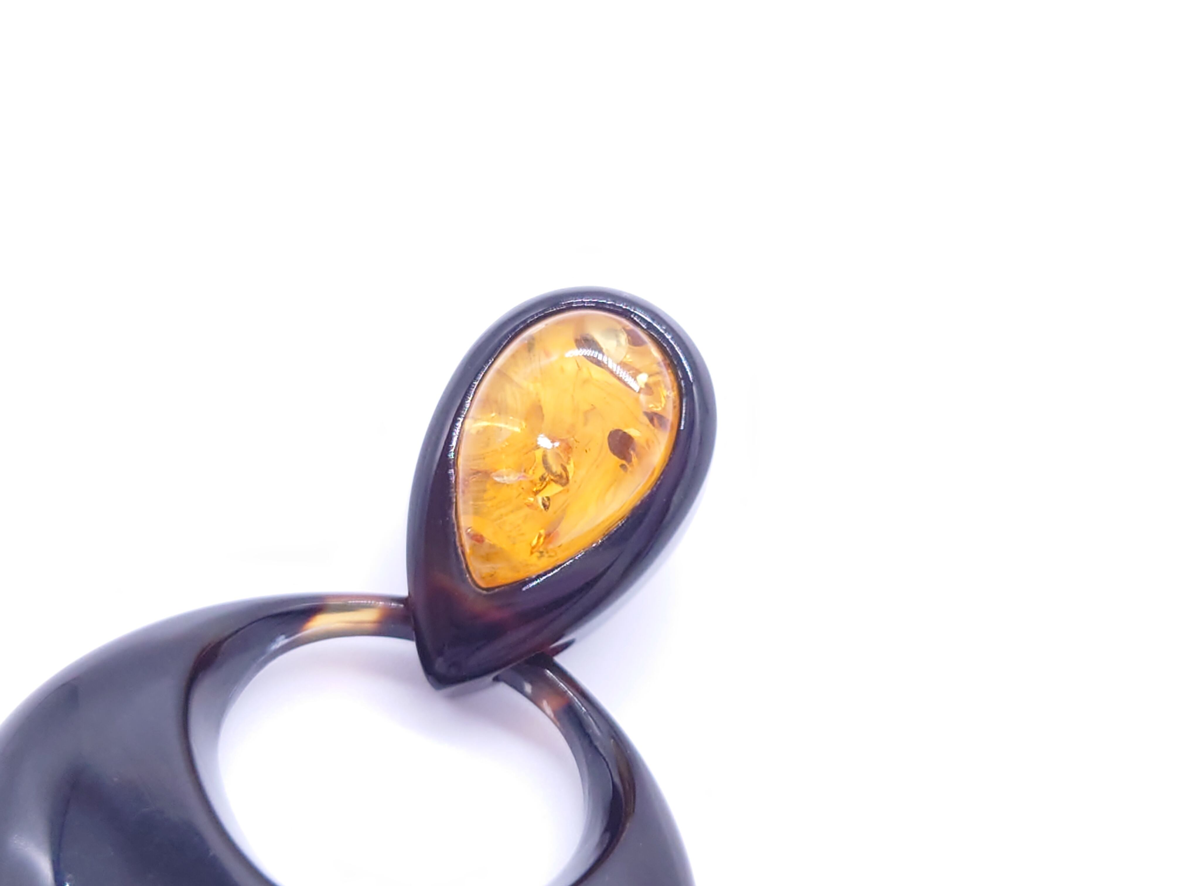 バチカン(チェーンの通る場所)を大きめに作り、シズク形の琥珀をはめ込みました。下のべっ甲はコロンと厚めにしっかりと作り、ゆらゆらと揺れる様にしています。結構ボリュームがありフォーマルな服装にもよく似合います。べっ甲チェーンは別売りになっていますがお持ちのお好きなネックレスに着けて頂いても素敵だと思います。ロングでもショートでもお好きに合わせて楽しんで頂けるペンダント!この機会に是非お買い求めください。 ※べっ甲及び琥珀等の天然素材はすべて本物です。