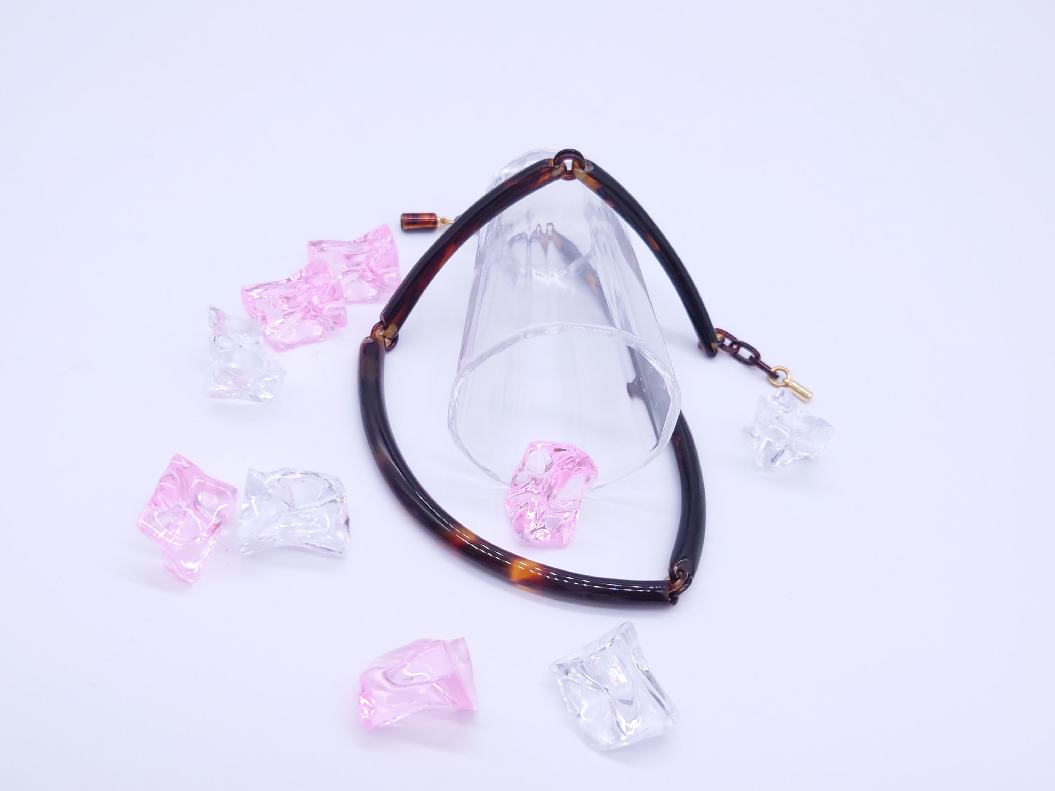 チョーカータイプのネックレスは3分割している為、少し動きがでるので首元にピッタリ添います。ネックレスだけで使って頂いても十分魅力的ですが別売りのべっ甲トップのペンダントを下げて頂いてもとてもステキです!ペンダントはバチカンが大きければ通りますのでお求めの際はセットで使いたいなどのご要望をお知らせ下さい!
