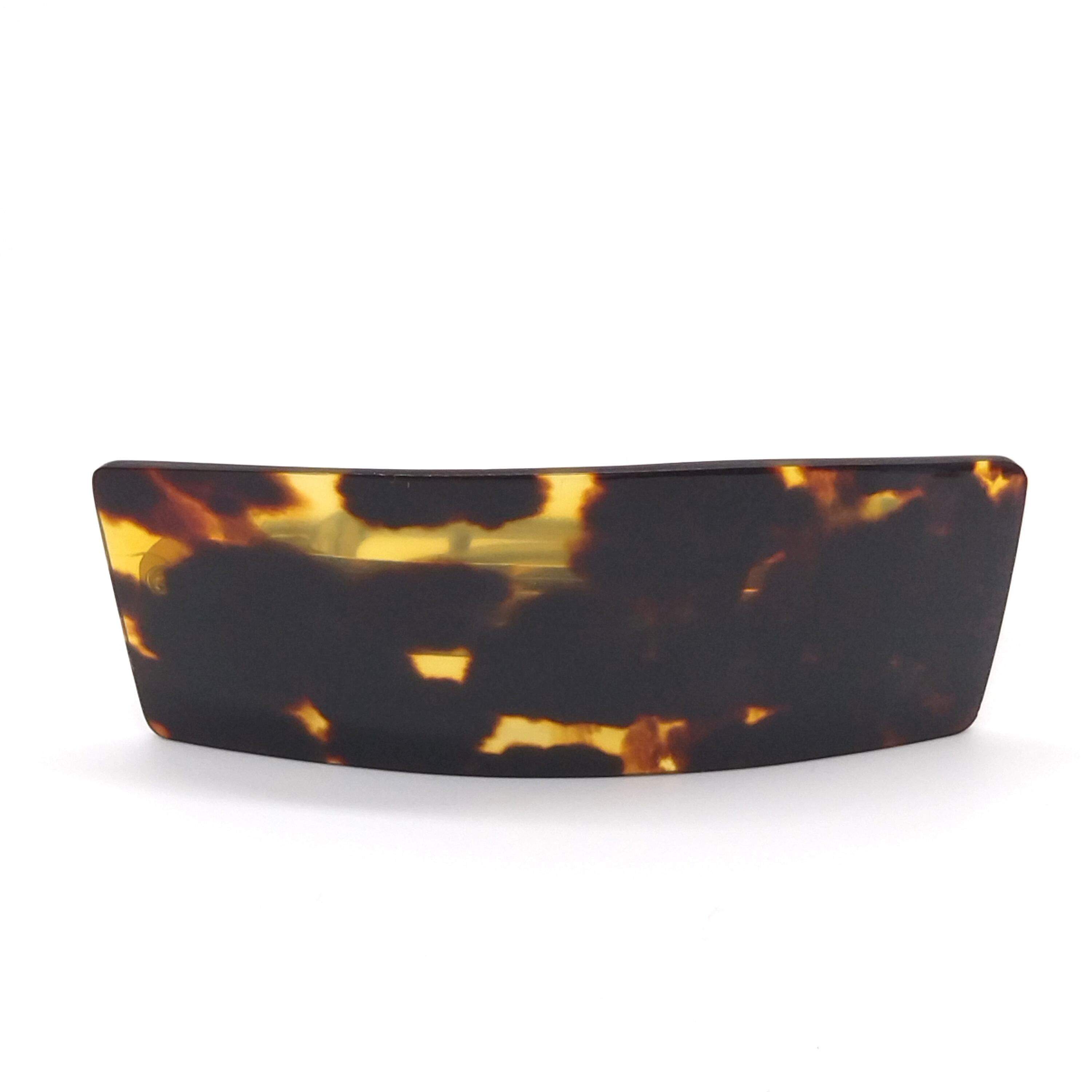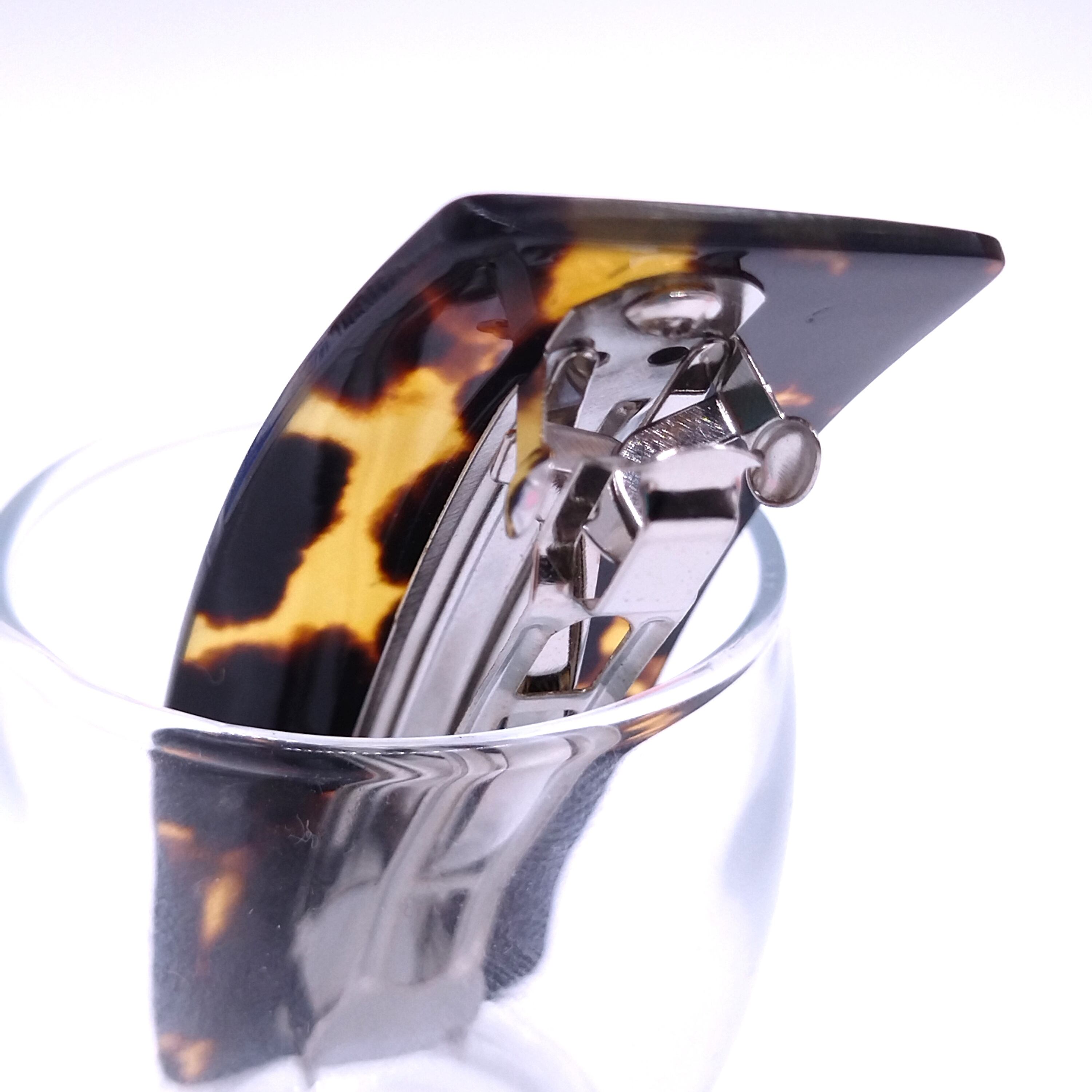 シンプルだけどべっ甲のインパクト大。横幅は約8cmあり、コーディネートのアクセントになるお洒落な髪留めです。
