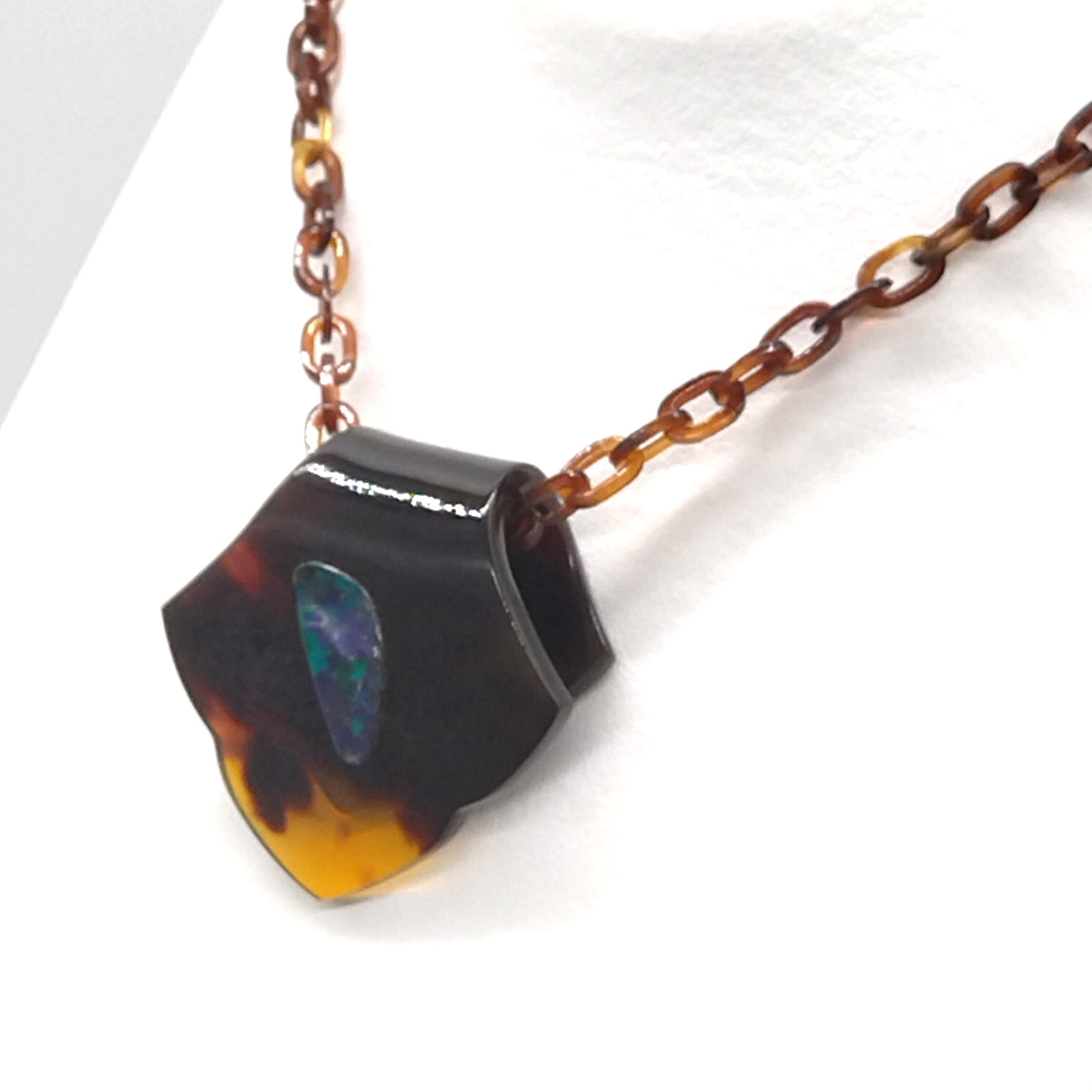 上品で落ち着いたべっ甲と煌びやかなボルダーオパールの組み合わせは、さらに高級感のあるペンダントに。