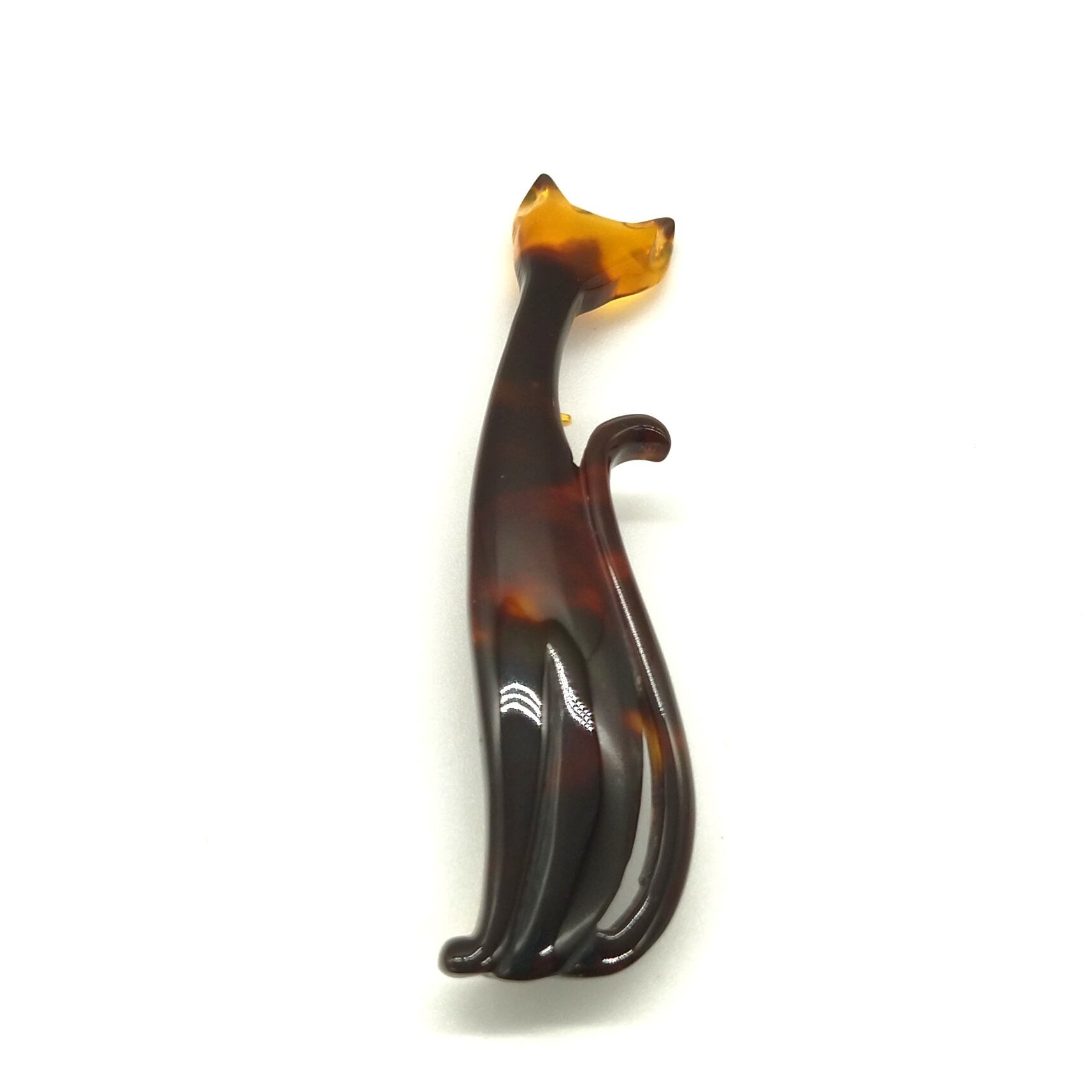 アートのように、細長くてスラっとしたシルエットのねこブローチ。