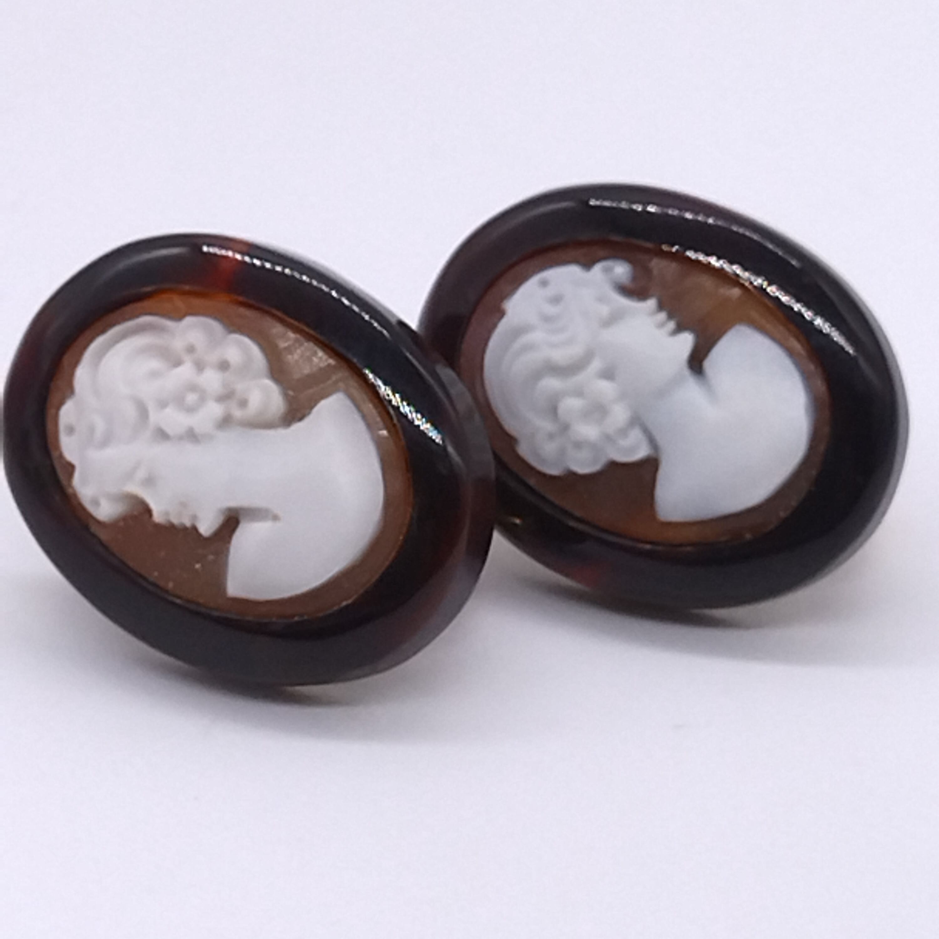 ホワイトカラーの立体感のあるシェルカメオ、女性横顔の肖像画。
