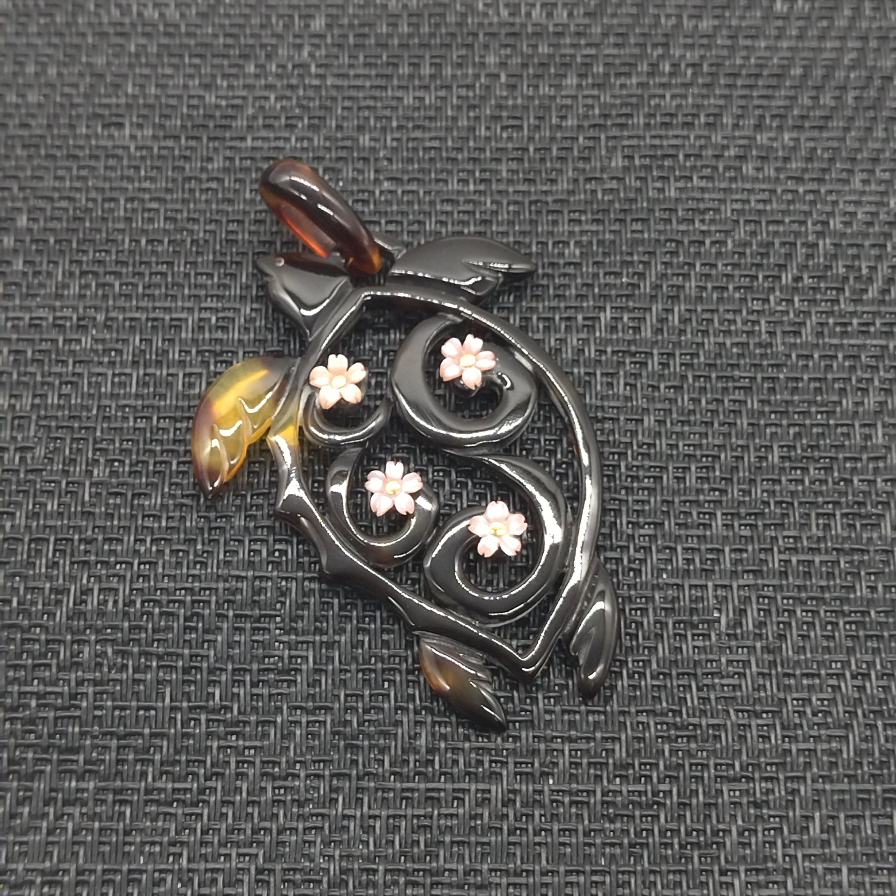 べっ甲 ペンダント バラフ 白蝶貝付き カメ 透かし彫り ピンク 花 (pe-047)