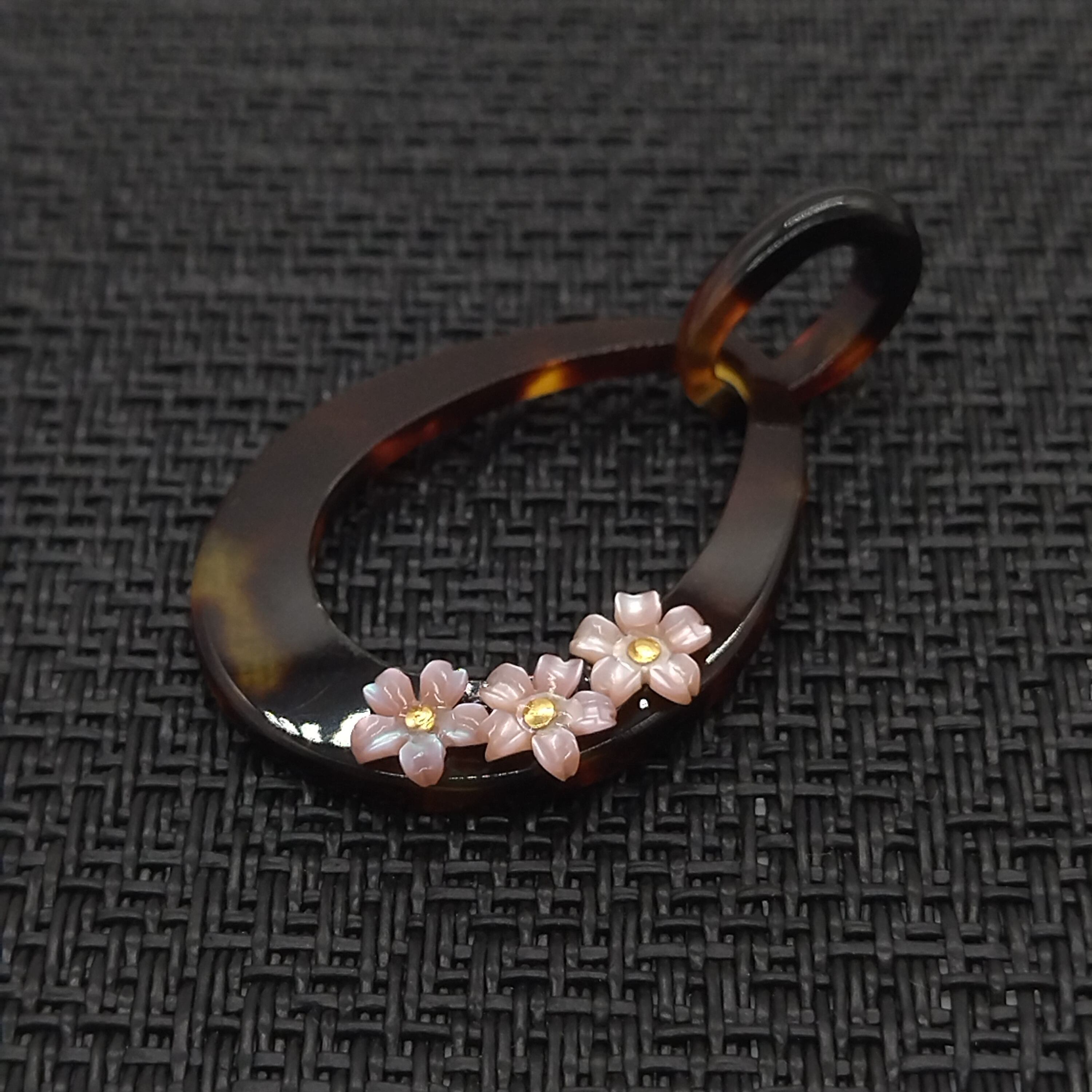 べっ甲 バラフ ペンダント 雫 白蝶貝付き フォーマル 花 (pe-051)