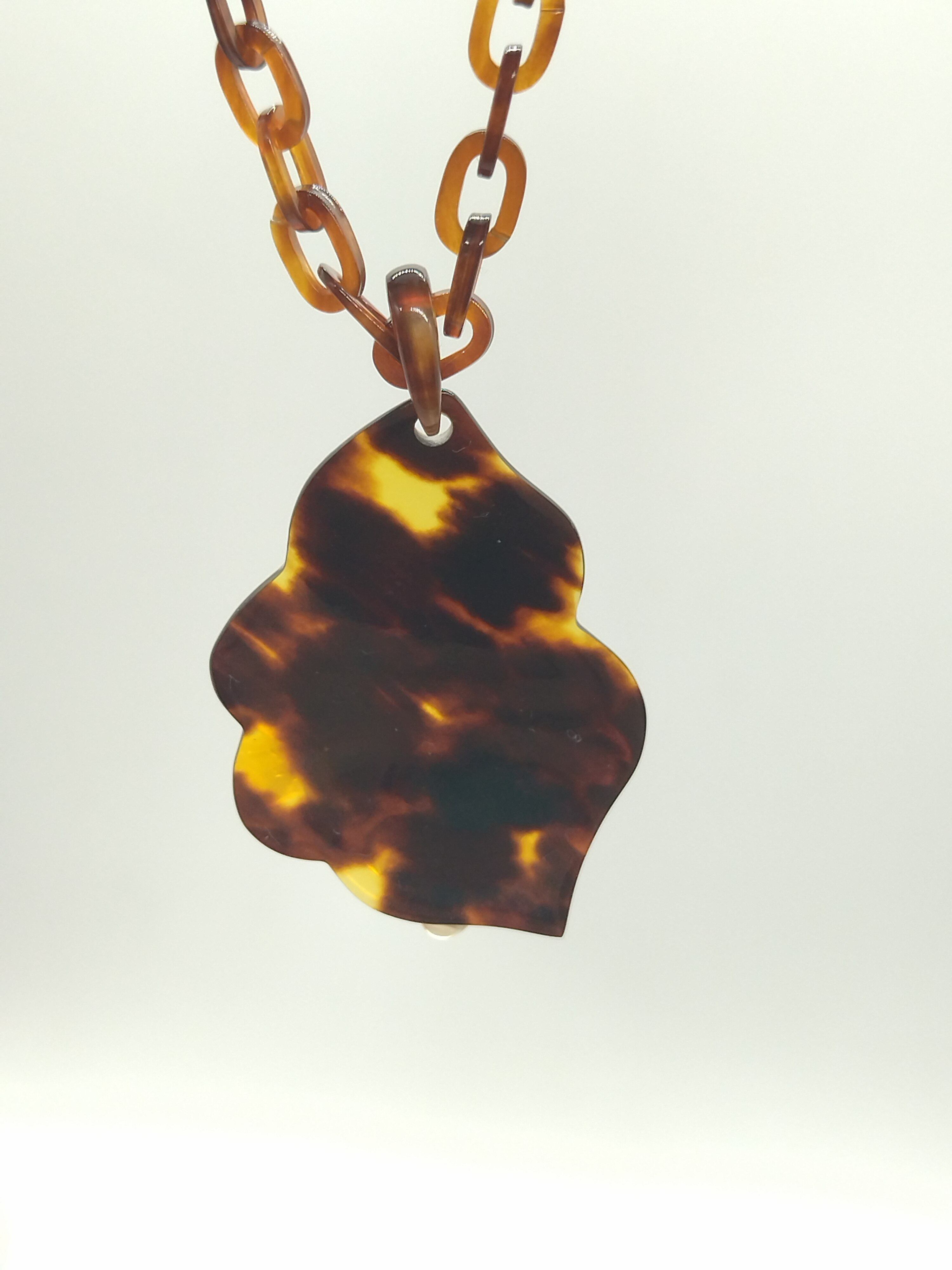 べっ甲 バラフ ペンダント リーフ 白蝶貝付き フォーマル 花 黄色 (pe-054)