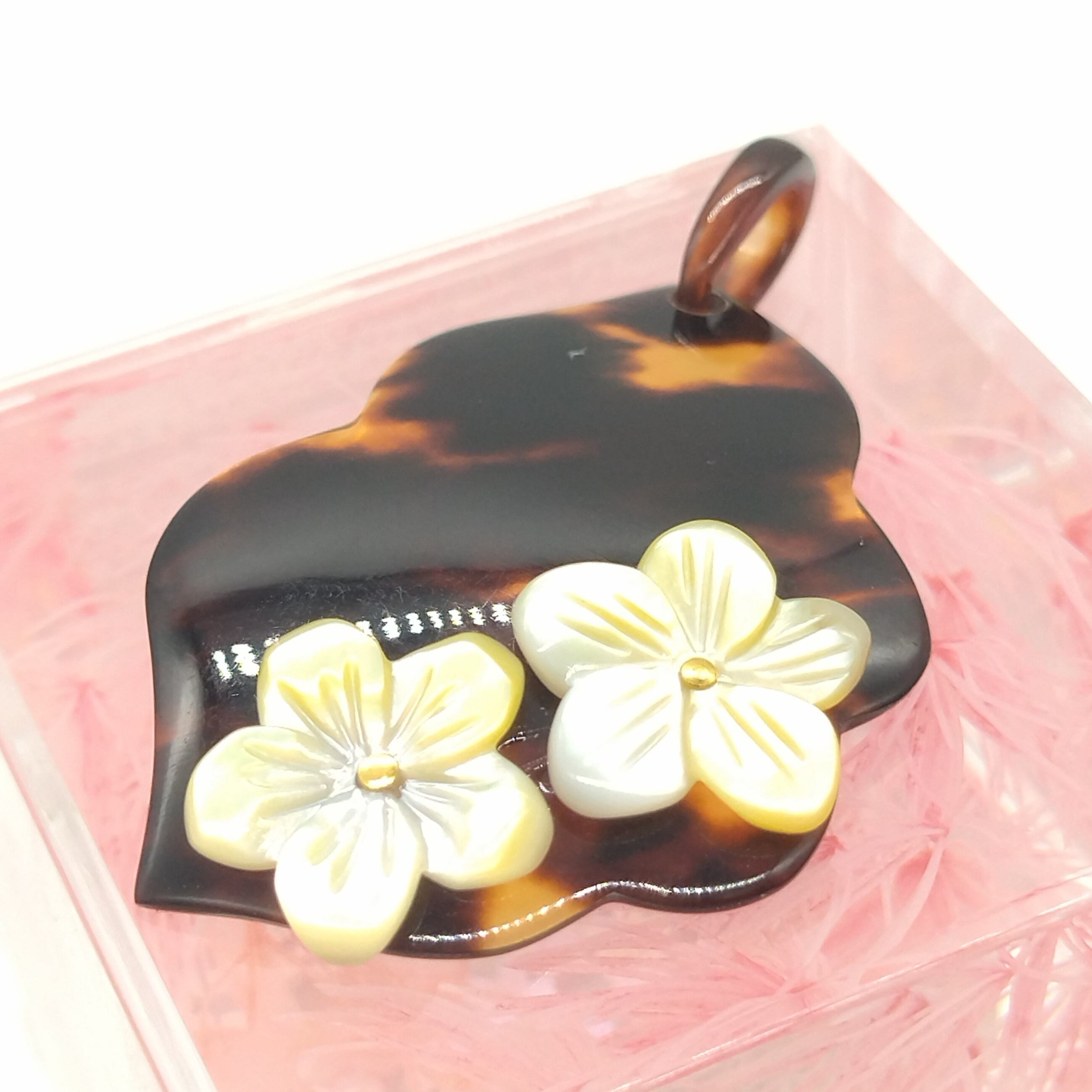 べっ甲には、イエロータイプの白蝶貝を使用したお花を2つ装飾。