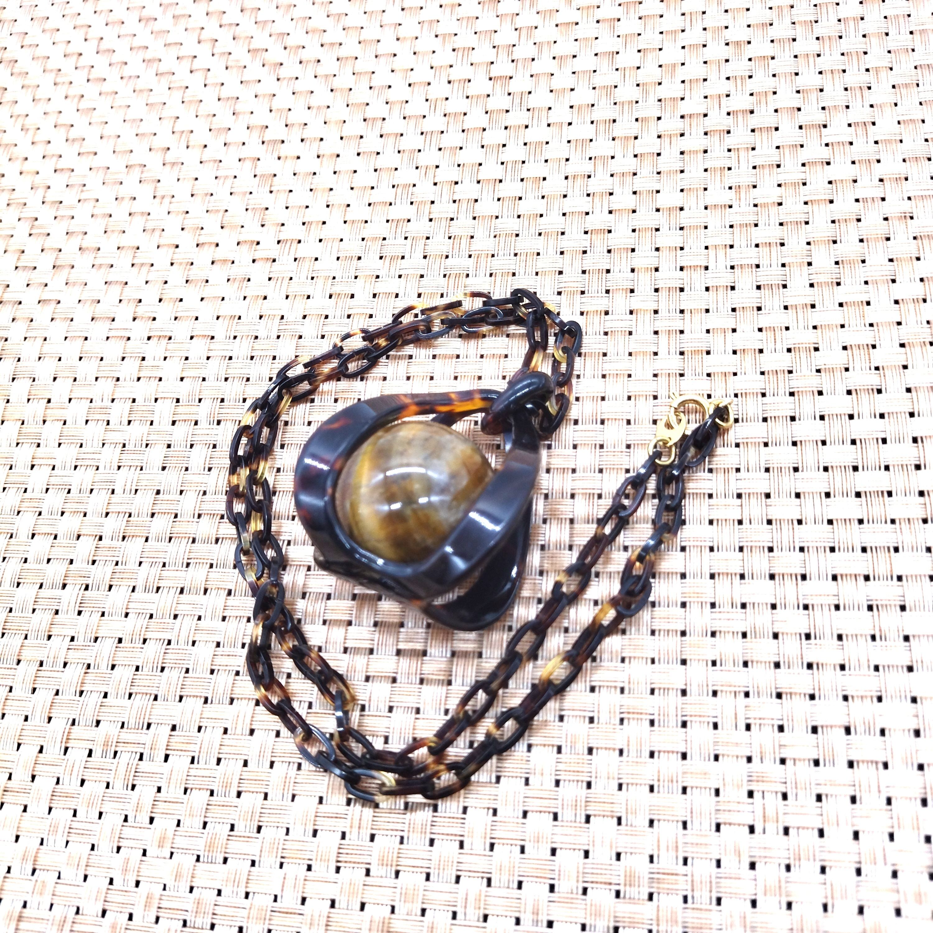 タイガーアイ付きで高級感があるべっ甲ネックレスです。