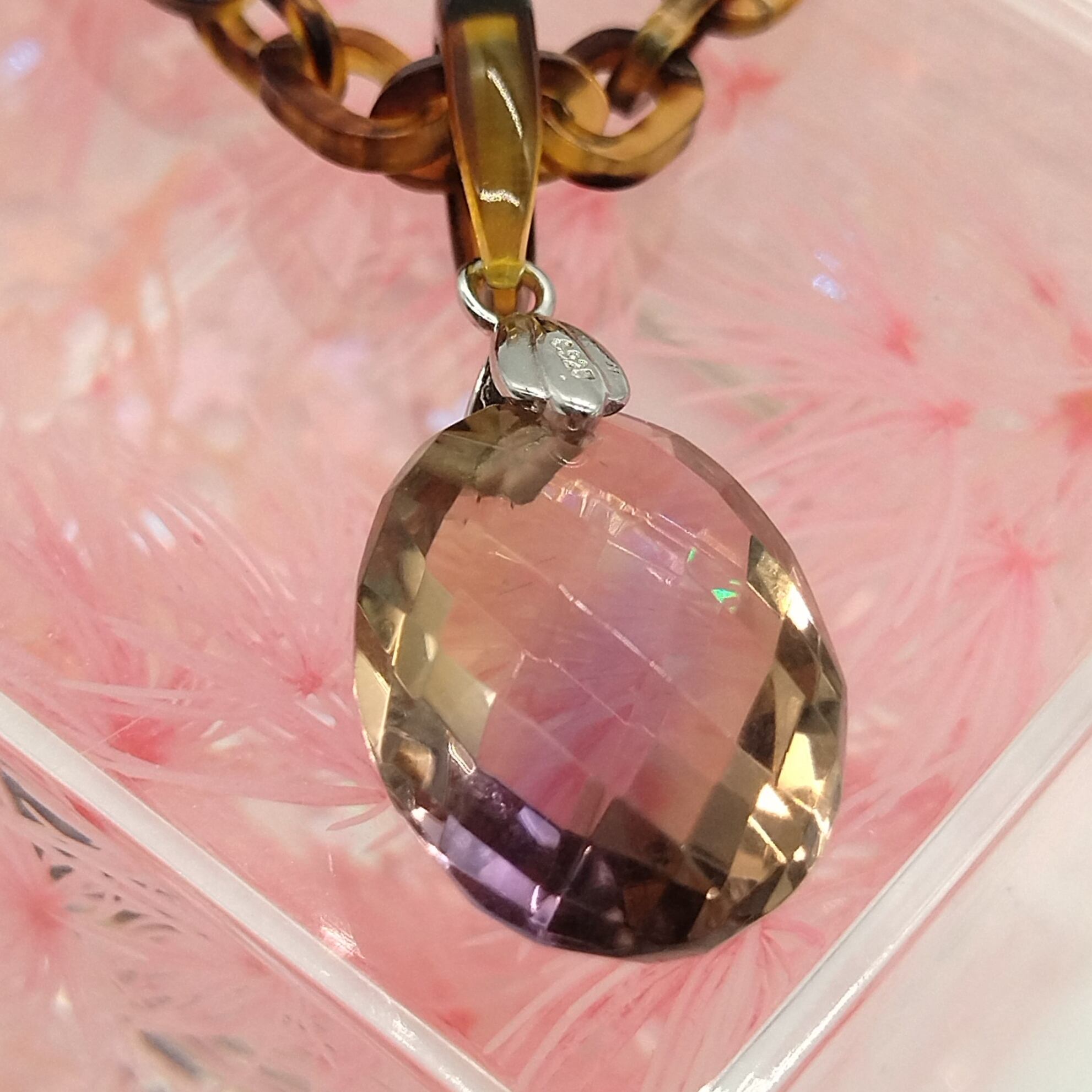 アメジスト×シトリンのアメトリンを使用し、光に当たるとより美しく輝きます。