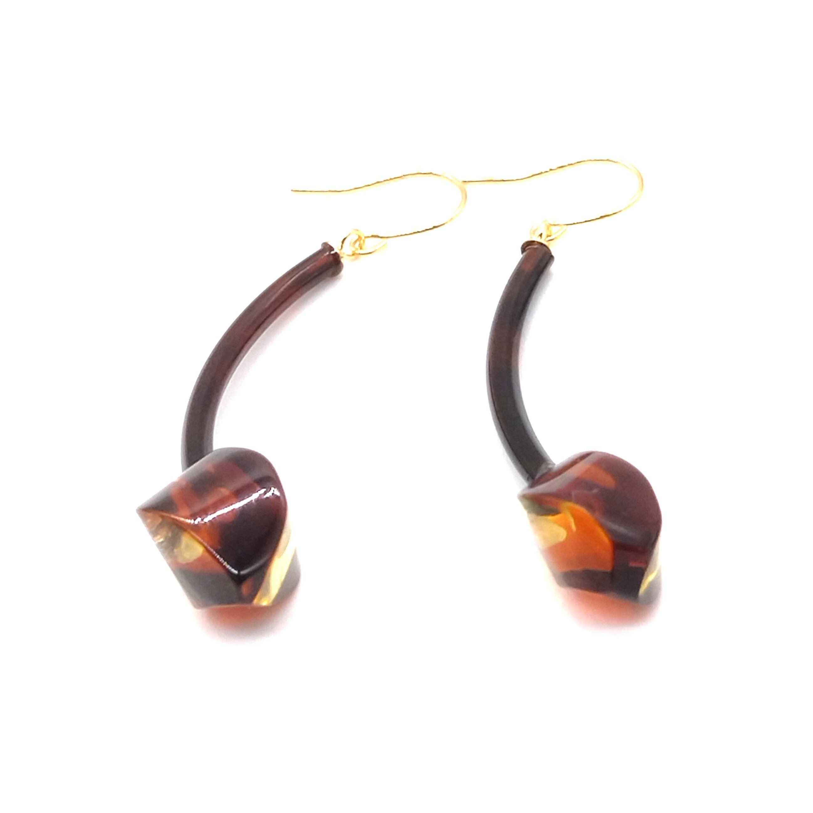 べっ甲 バラフ ピアス チェリー ぶら下がり 琥珀 (pi-053)