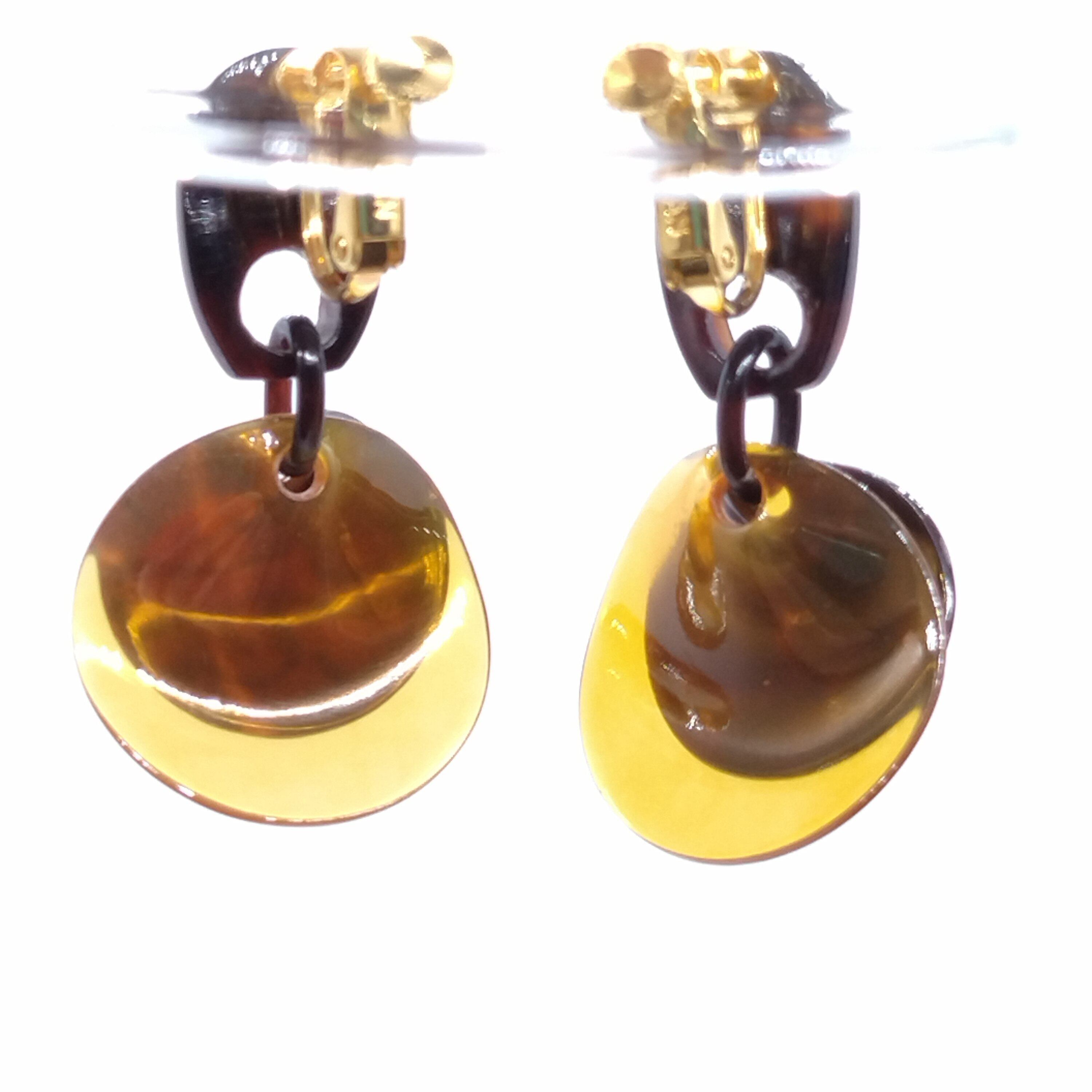 カジュアルにもフォーマルにも合わせることができる万能イヤリングです。 ※べっ甲及び琥珀等の天然素材はすべて本物です。