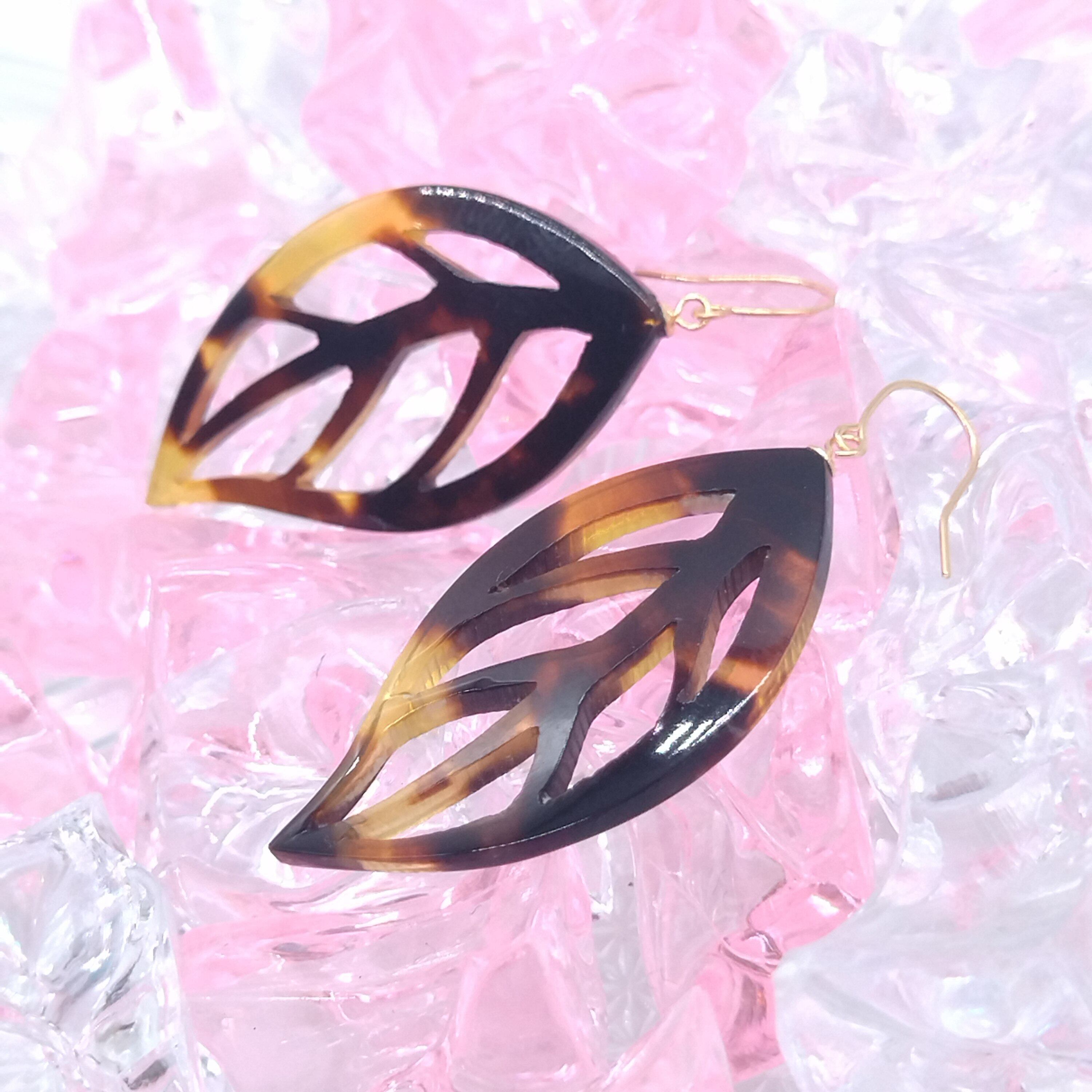 べっ甲 バラフ ピアス リーフ 透かし彫り