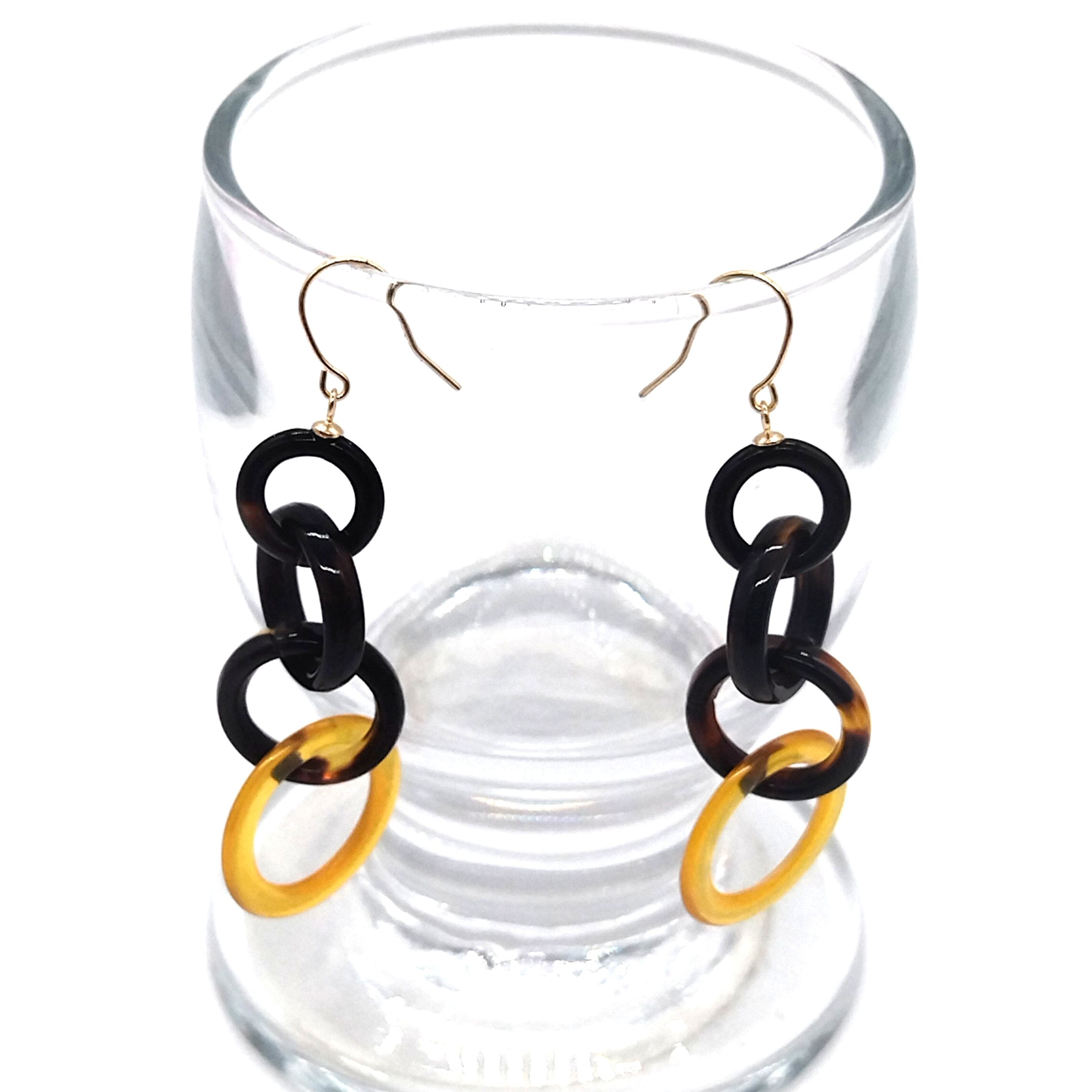 上品なピアスになります。 ※べっ甲及び琥珀等の天然素材はすべて本物です。