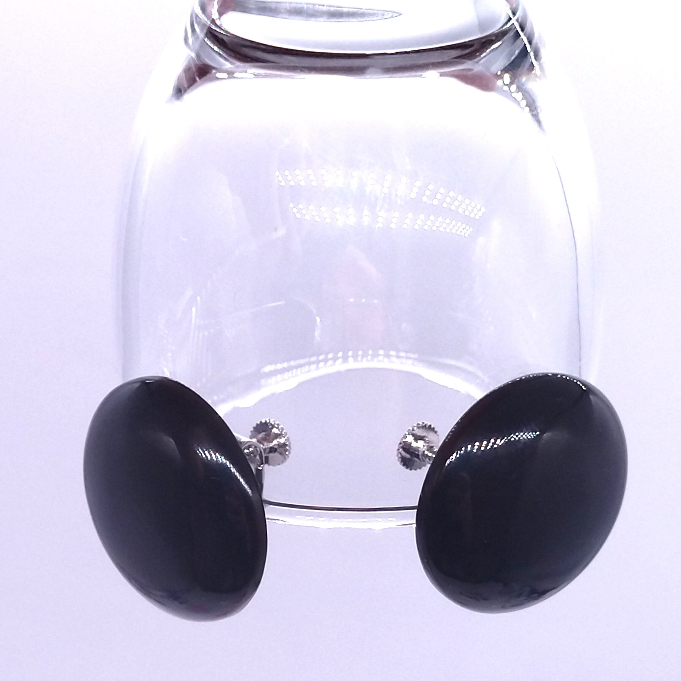 黒甲の大きめな丸形イヤリングで、金具もシルバーメッキのため、コーディネートをシックに決めたいときにおすすのアクセサリーです。
