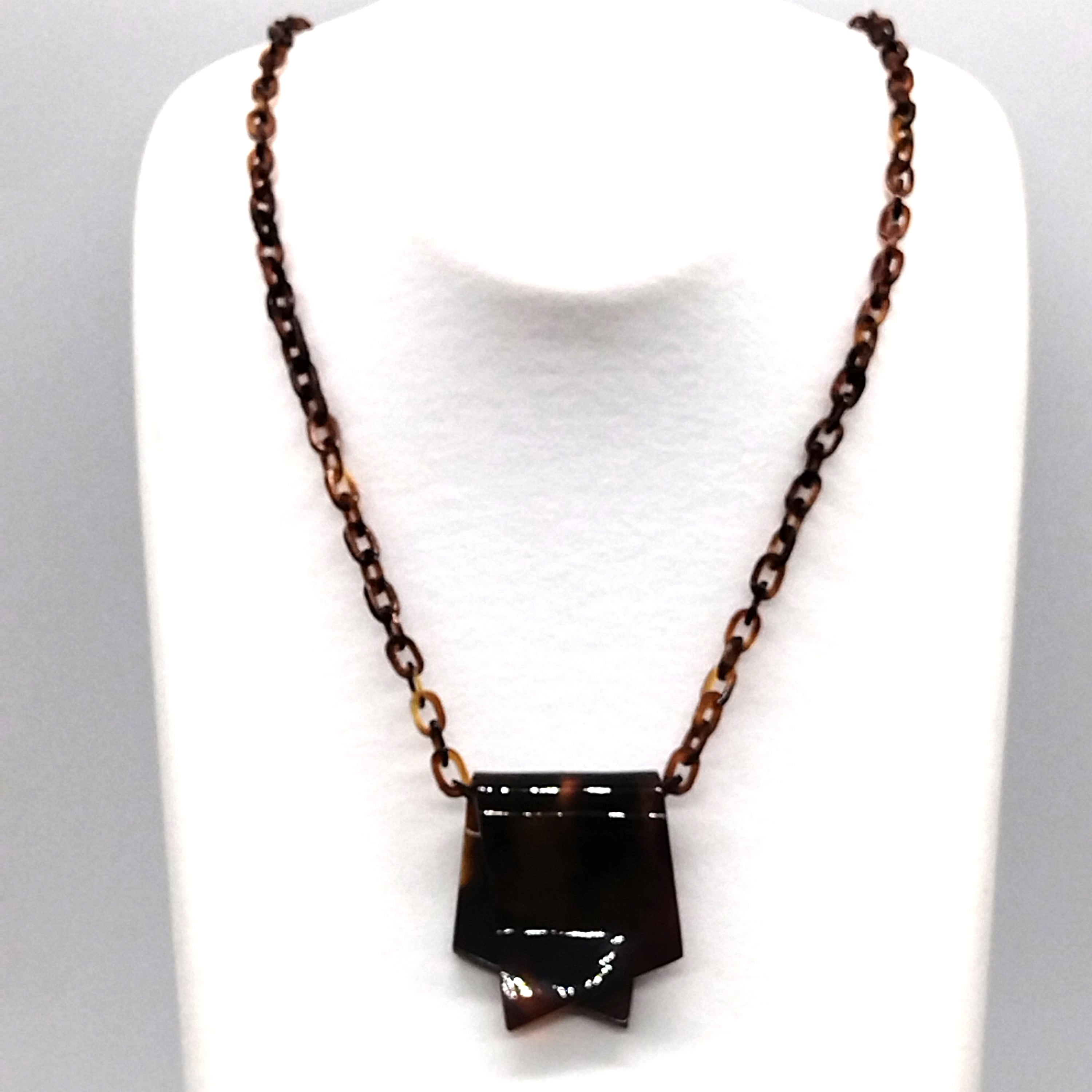 べっ甲を折りたたむように加工したデザインで、ペンダントチェーンに挟んで使います。