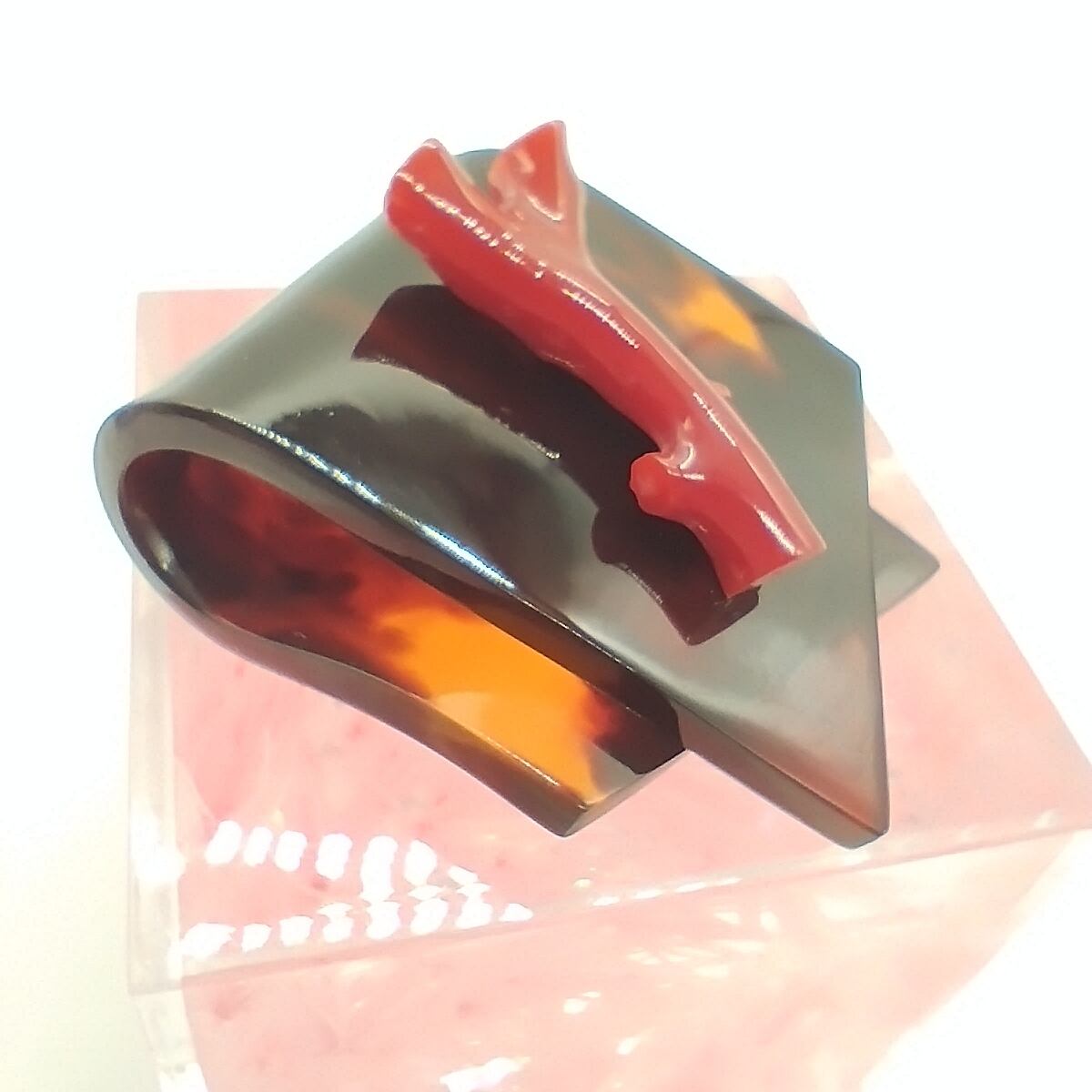 べっ甲 バラフ 本珊瑚 ペンダント 高級感 折り曲げ (pe-085)