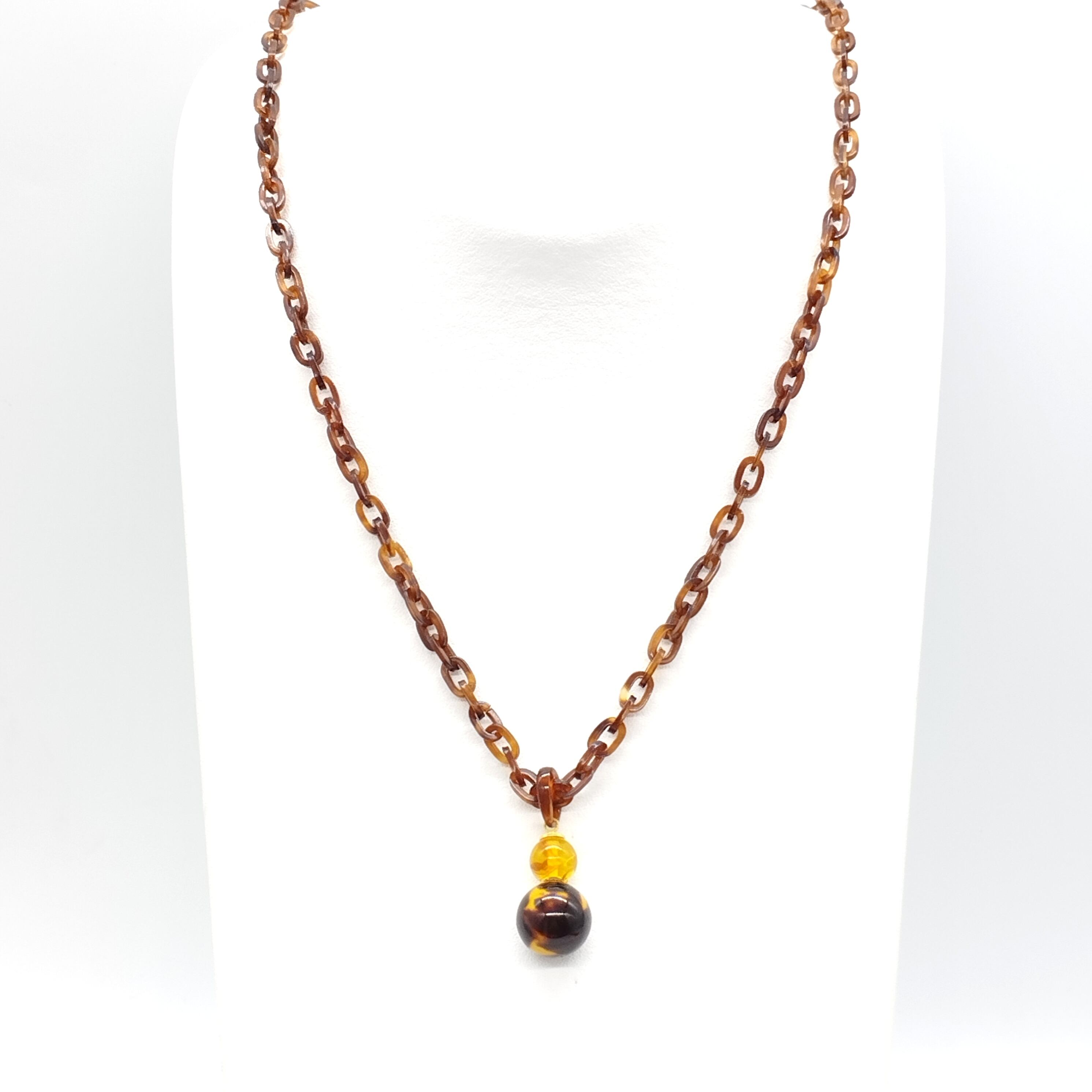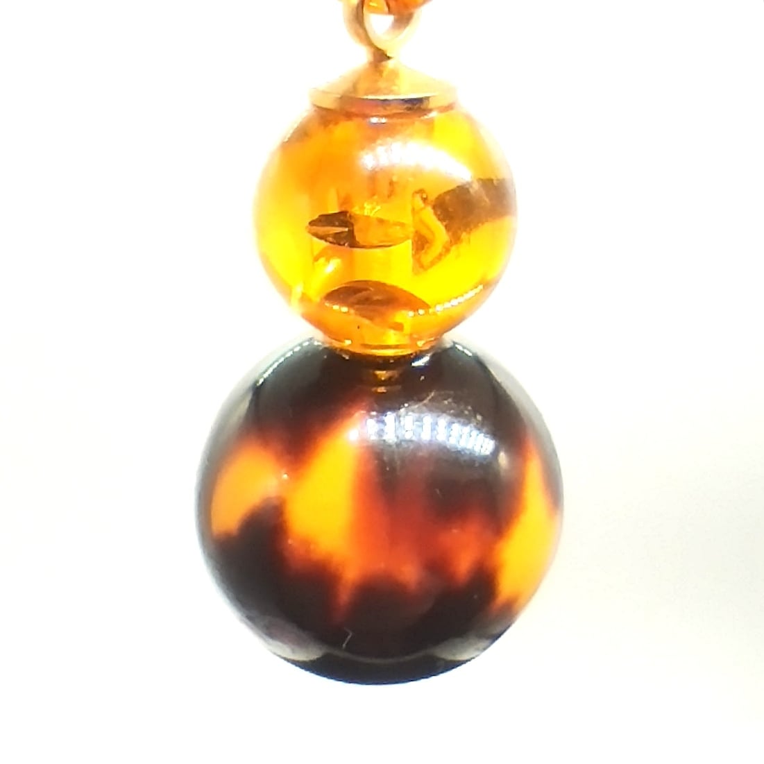 べっ甲 バラフ 本琥珀 丸玉 2連 ペンダント