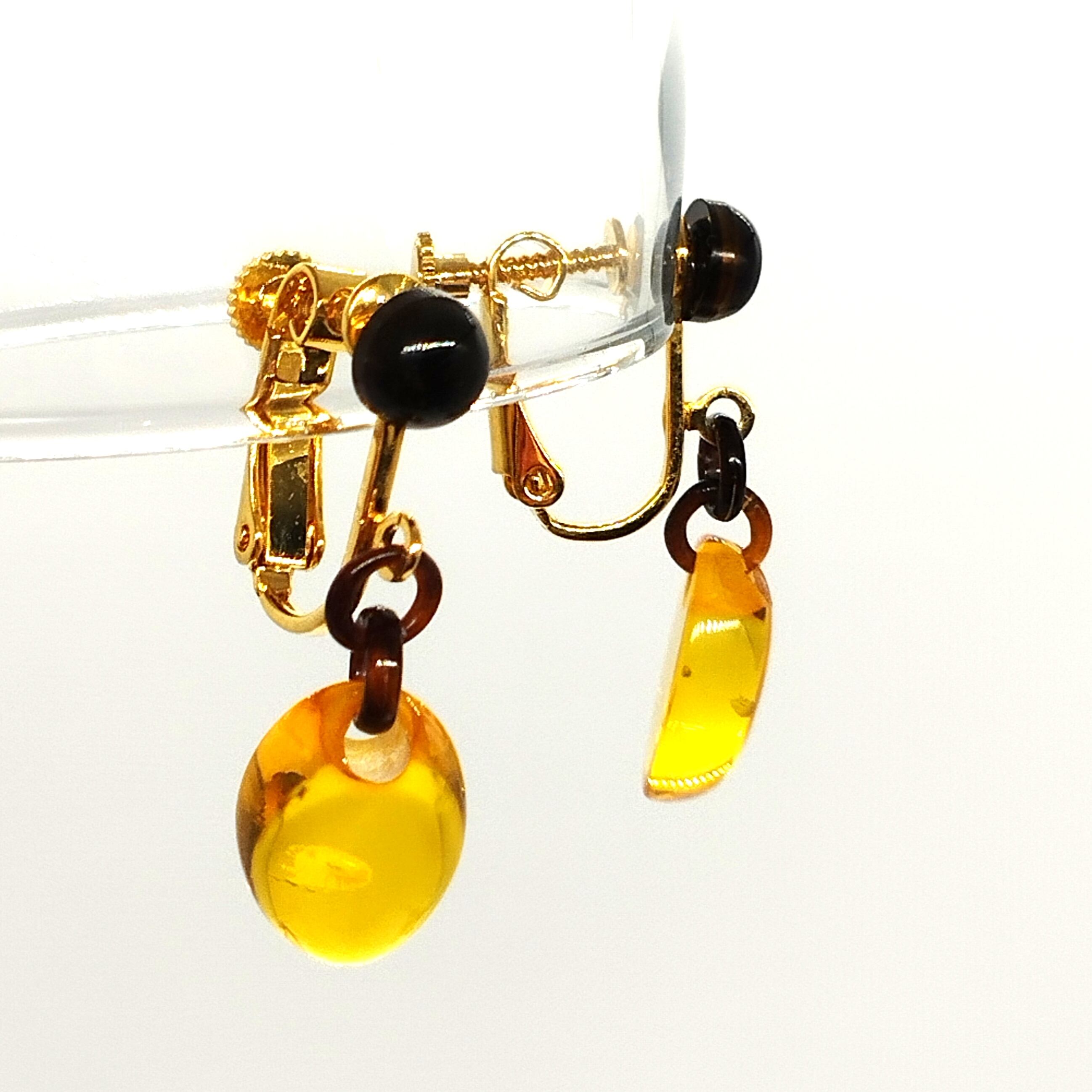 べっ甲 バラフ 本琥珀 イヤリング ぶら下がり イエロー (E-068)