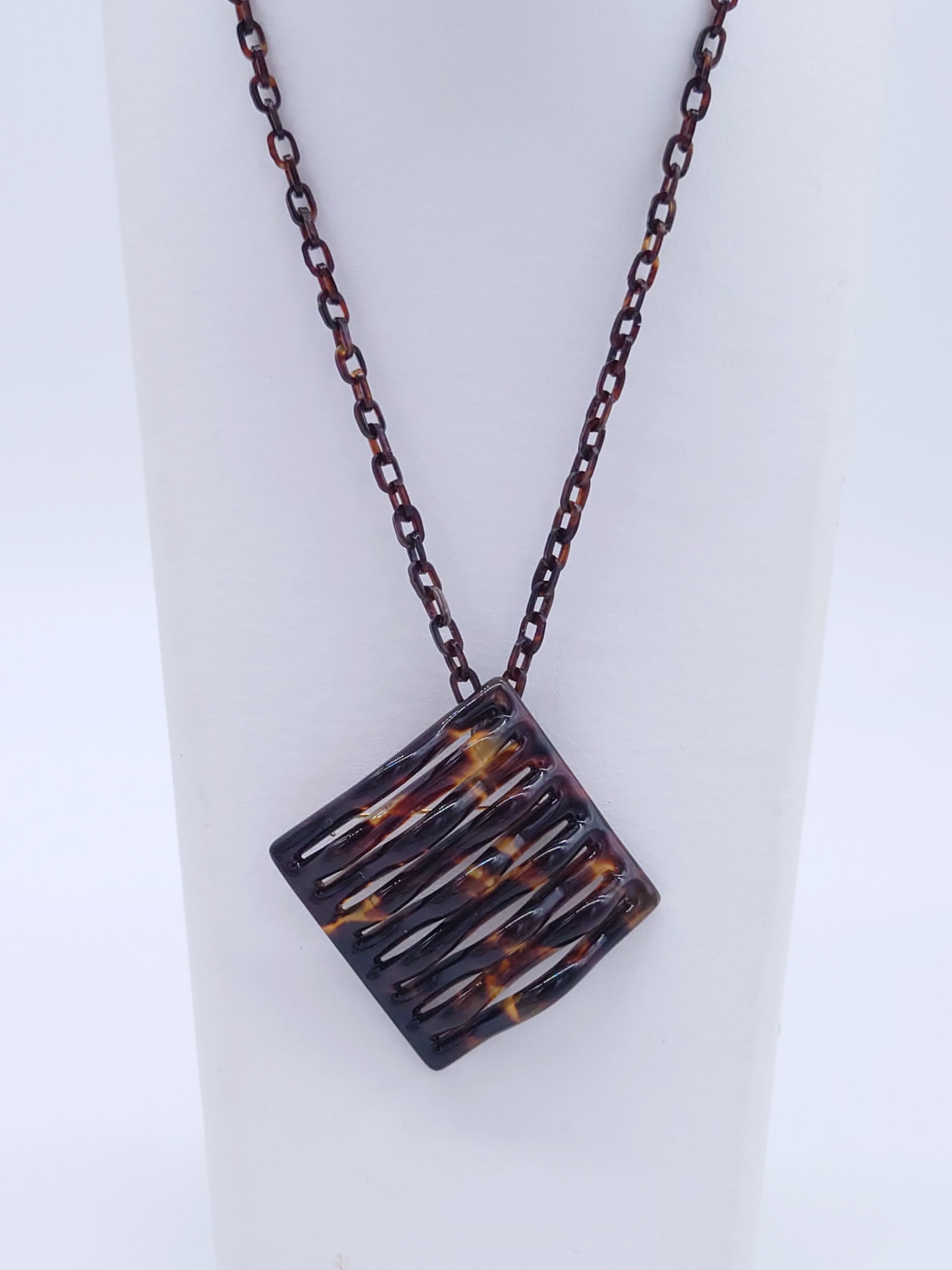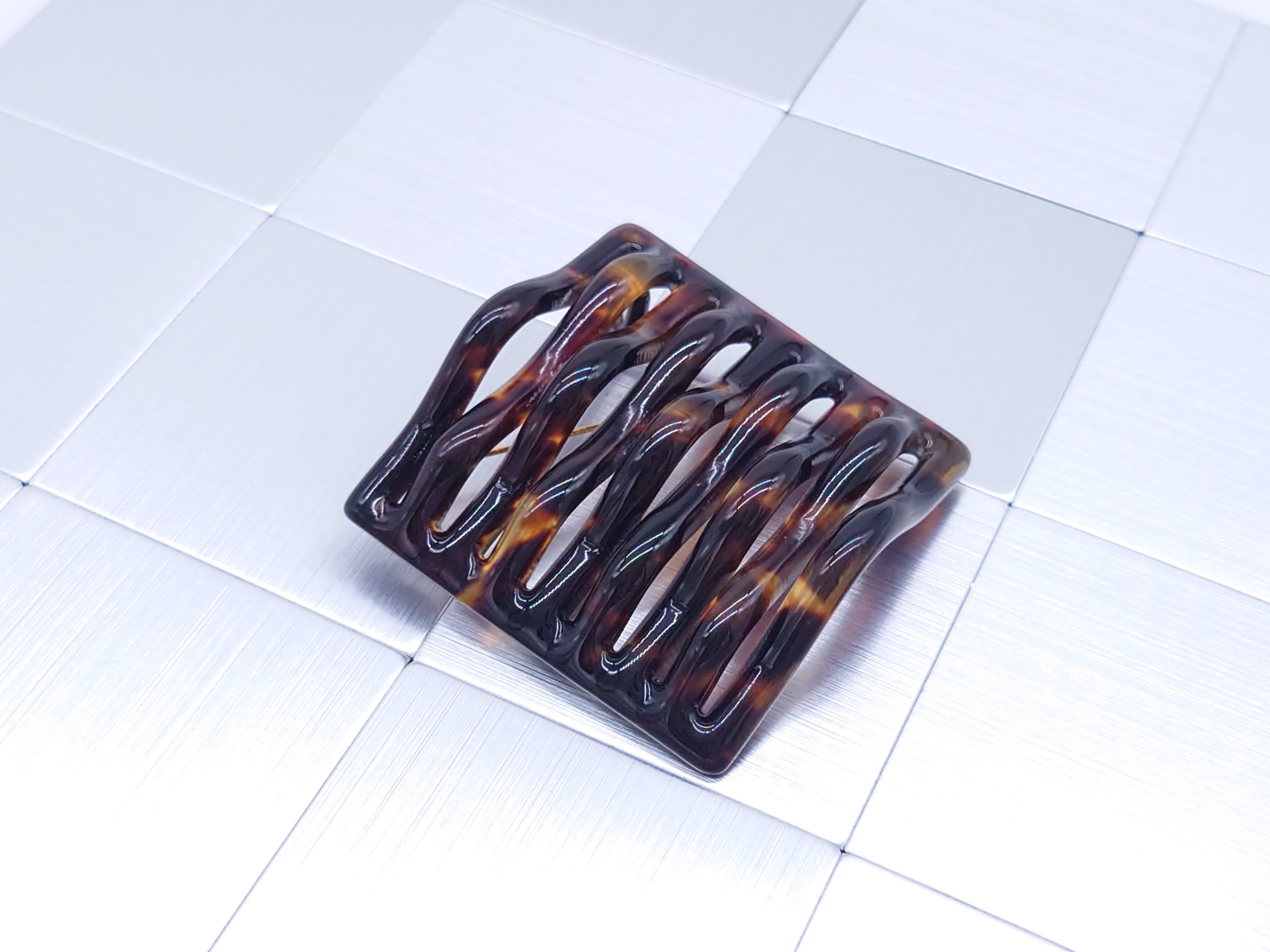 ●サイズ タテ約7cm×ヨコ約7.5cm ●説明 本べっ甲 バラフ(背甲)使用 ペンダント兼用 ※チェーンは別売りになります。スクエア型のシャープなデザイン。職人さんの技による綺麗な波模様はまさに匠の技です。まるで洋菓子を焼き上げたような美しい曲線とバラフのべっ甲らしい色合いはとても上品。画像にも載せていますがチェーンを通してペンダントネックレスにも使えてとても使い勝手の良い商品となっております。デザインも非常に珍しい為、オススメです。恐らく追加の作成が出来ないためお気に召して頂けたならお早目のご購入をオススメします。商品はこちらの梱包にて大切に発送致します。天然素材の為、色目やサイズ感は多少異なる場合がございます。※べっ甲及び琥珀等の天然素材はすべて本物です。