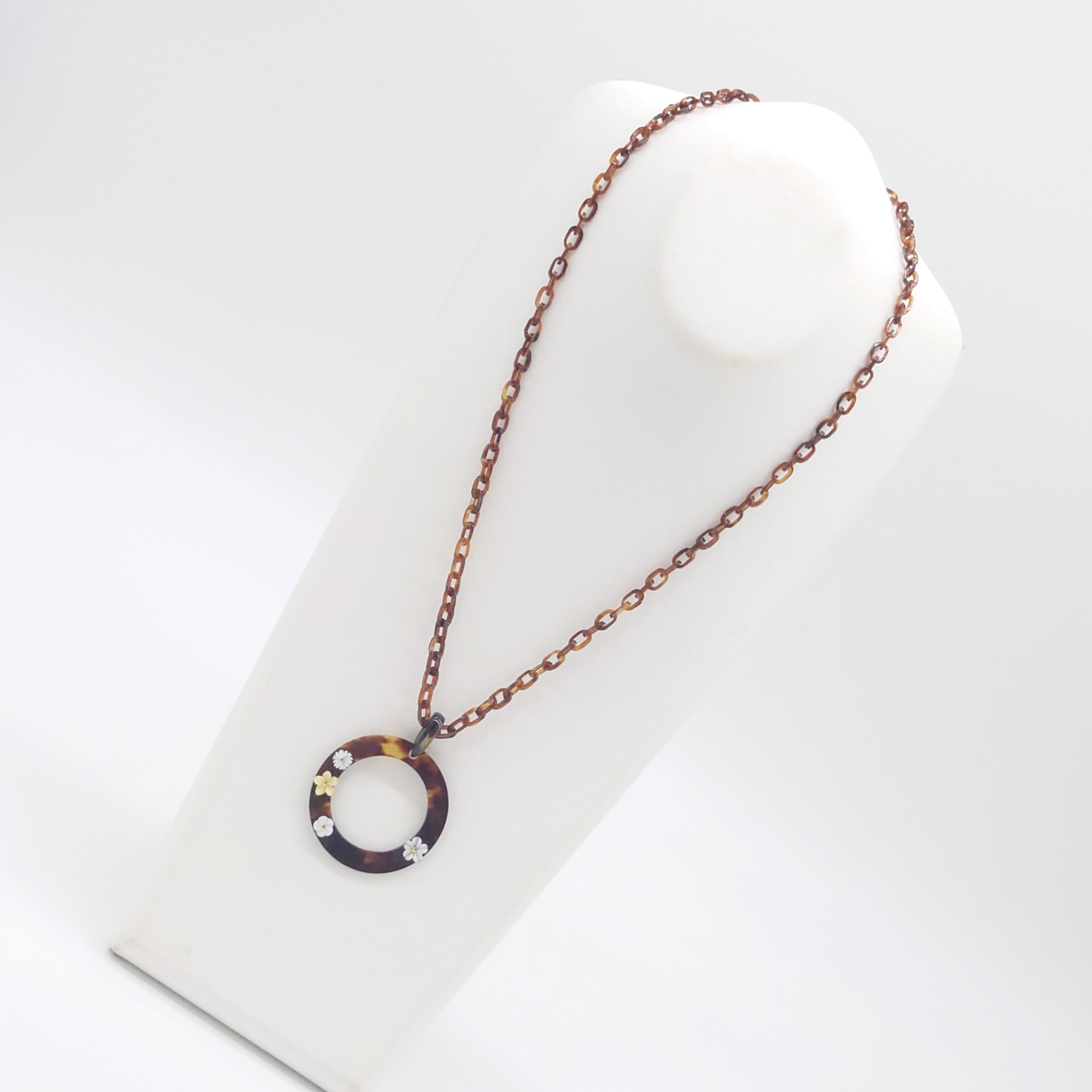 ●サイズ タテ約6.7cm×ヨコ約4.4cm(バチカン含む)※チェーンは別売りになります。 ●説明 本べっ甲 バラフ(背甲)使用 蝶貝(花モチーフ)使用 サークルタイプの少し大きめべっ甲に可愛らしい蝶貝を散りばめたペンダント。どちらかというとカジュアル向きですがフォーマルでも上品さがあるため、ご使用可能な万能アイテム!大人かわいいを肌で感じてほしいペンダント。サークルタイプですので色々なお洋服にも合わせやすくなっています。この価格でのべっ甲はリーズナブルに提供させていただいてますのでこの機会に是非ご購入下さい。親子でのシェアもよろしいかと思います。商品はこちらの梱包にて大切に発送致します。天然素材の為、色目やサイズ感は多少異なる場合がございます。※べっ甲及び琥珀等の天然素材はすべて本物です。