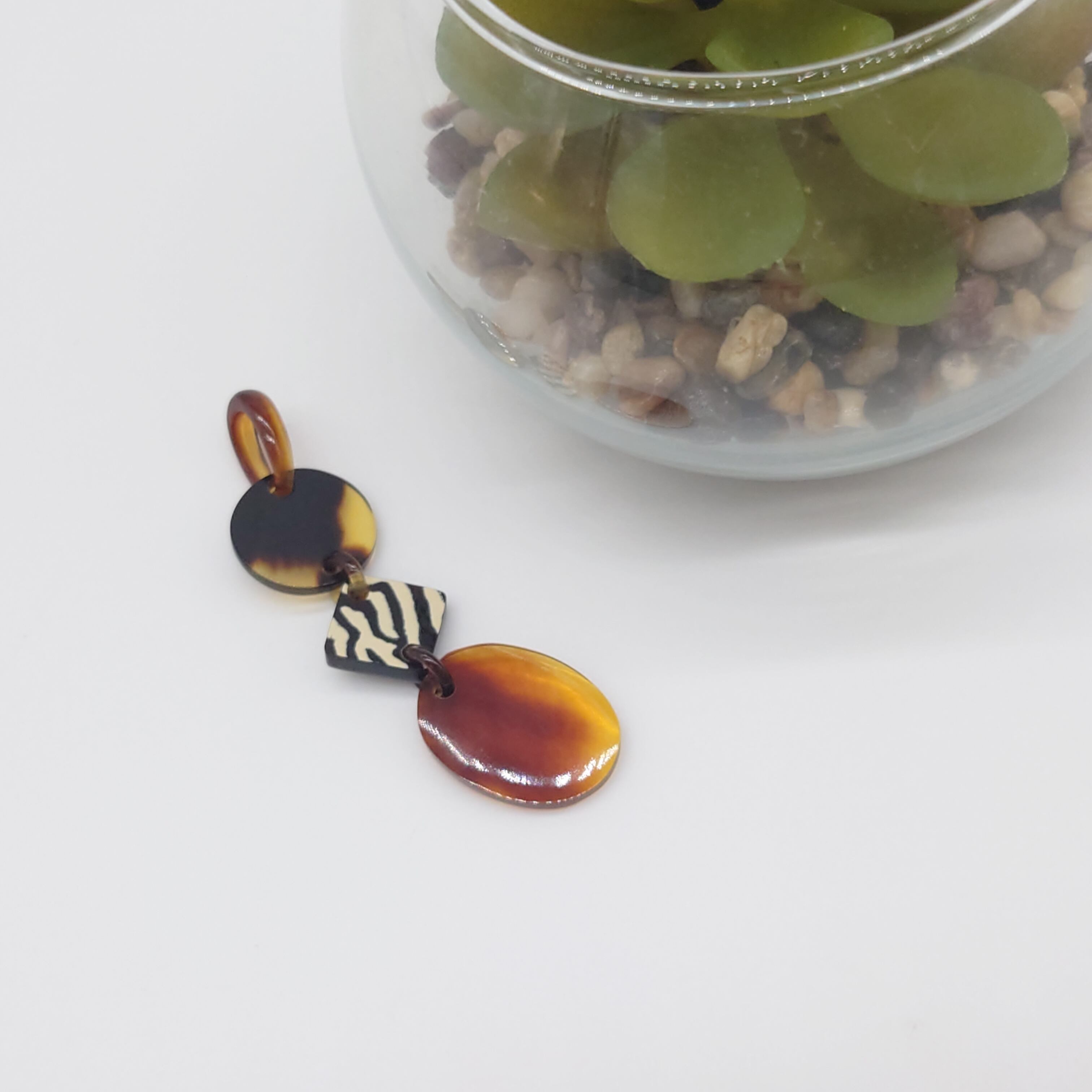 ●サイズ タテ約6.3cm×ヨコ約1.5cm(バチカン含む)※チェーンは別売りになります。 ●説明 本べっ甲 バラフ(背甲)使用 水目柄(漆塗り)使用 三個つなぎの可愛いペンダント。真ん中には水目柄を使いインパクトを付けています。上から丸、ひし、オーバル、と形の違うパーツで組み合わせたペンダントはとてもキュートでカジュアルスタイルにピッタリです。お持ちの革紐などの素材と合わせて頂いても素敵です。普段使いで少しのお出かけやお部屋内でも気軽にべっ甲を楽しんで頂けますと幸いです。親子でシェアされても素敵ですし大切な方へのプレゼントにも最適です。お値段もリーズナブルに設定しています。商品はこちらの梱包にて大切に発送致します。天然素材の為、色目やサイズ感は多少異なる場合がございます。※べっ甲及び琥珀等の天然素材はすべて本物です。