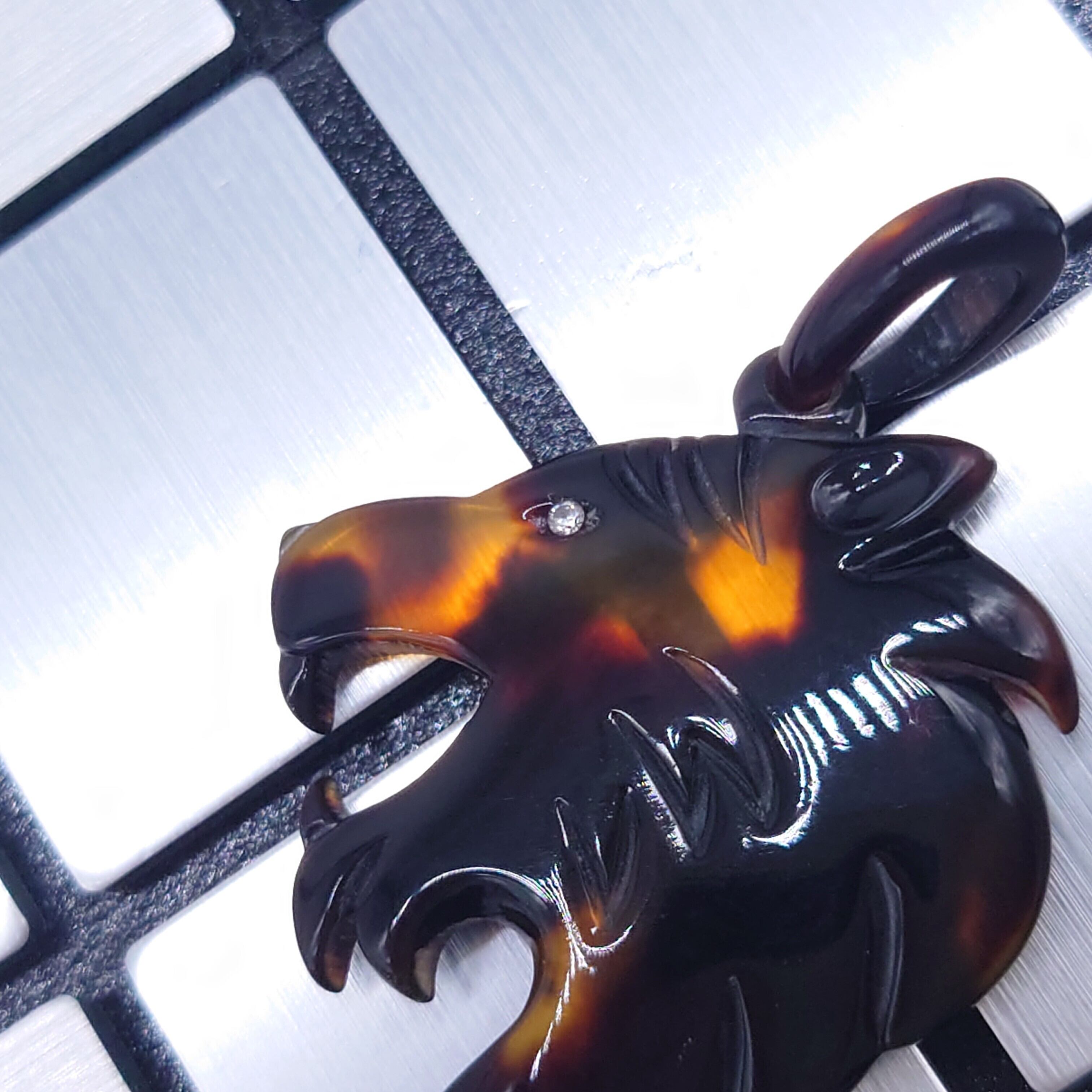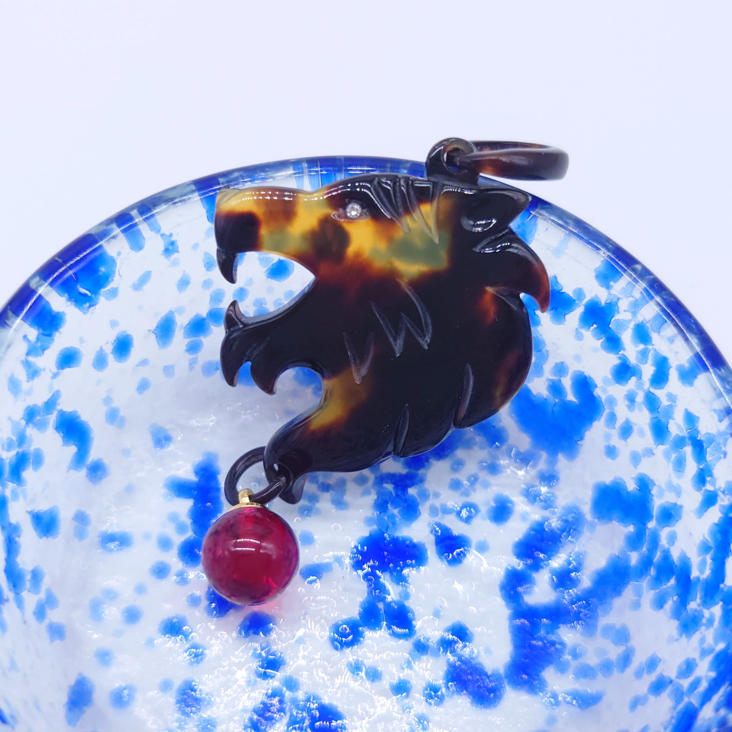 ●サイズ タテ約6.3cm×ヨコ約3.5cm(バチカン含む) ●説明 本べっ甲 バラフ(背甲)使用 琥珀(レッドアンバー)使用 メレダイヤ使用 トラをモチーフにしたお洒落なペンダント。首元から下には上品に琥珀をぶら下げ、目には輝くメレダイヤを埋め込み本物の良さを追求した豪華なペンダント。フォーマル、カジュアルのどちらにも合わせて頂けるアイテムです。アニマル好きには是非とも購入して頂きたい一品です。商品はこちらの梱包にて大切に発送致します。天然素材の為、色目やサイズ感は多少異なる場合がございます。※べっ甲及び琥珀等の天然素材はすべて本物です。