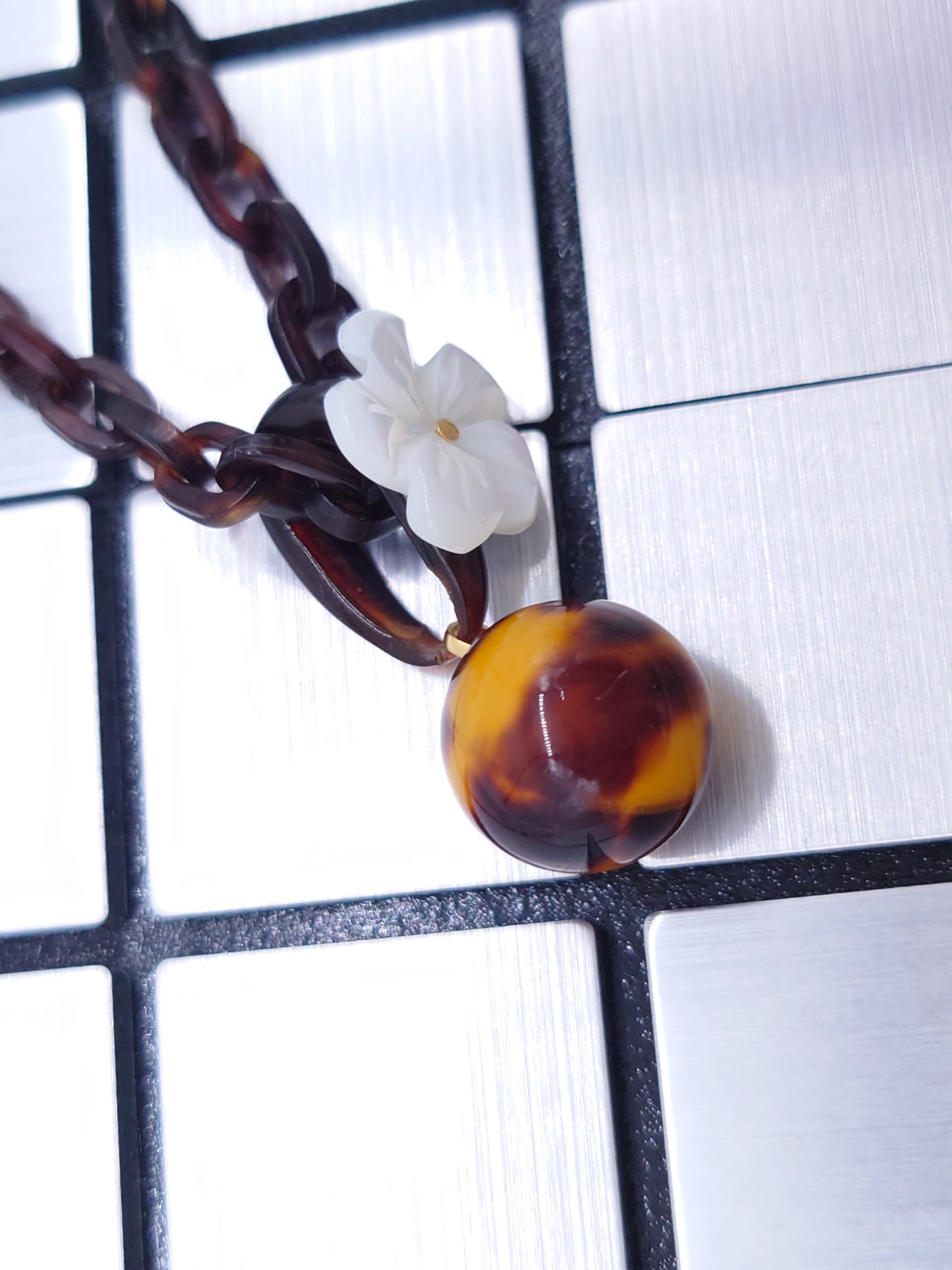 ●サイズ タテ約3.5cm×ヨコ約1.5cm ●説明 本べっ甲 バラフ(背甲)使用 蝶貝花ルース使用 ※チェーンは別売りになります。ふくらましタイプのべっ甲丸玉パーツにべっ甲バチカンを取り付けそこに蝶貝花を着けました。ありそうで無かったお洒落デザイン!綺麗な蝶貝がアクセントになりオーガニック感がさらにアップ!カジュアルで気軽にお出かけして欲しいペンダント。白蝶貝の輝きも素敵です。Tシャツやセーターに可愛くワンポイントに!大切な方へのプレゼントにも最適です。商品はこちらの梱包にて大切に発送致します。天然素材の為、色目やサイズ感は多少異なる場合がございます。※べっ甲及び琥珀等の天然素材はすべて本物です。