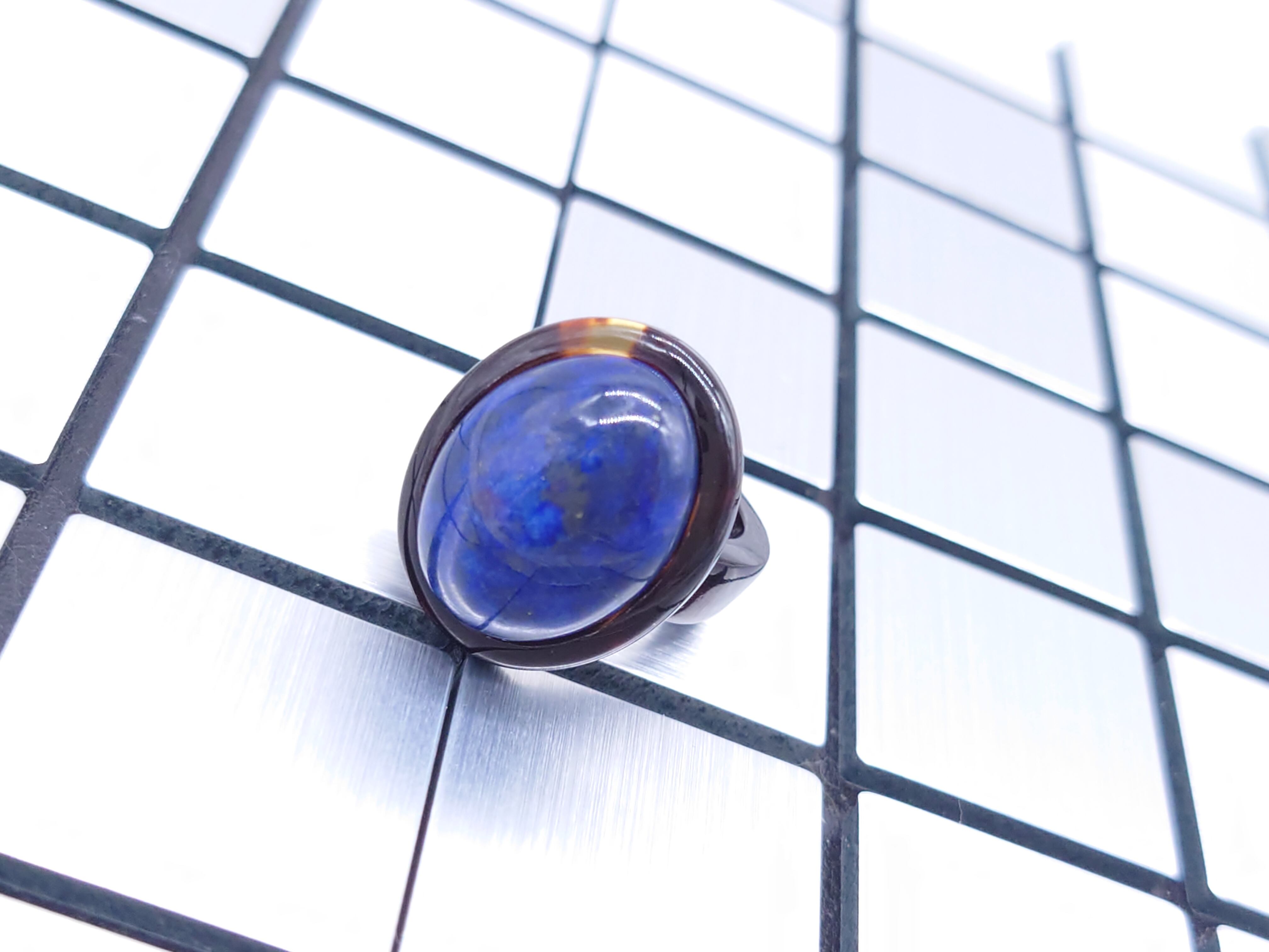 ●サイズ #11~#13(フリー)べっ甲幅約6ミリ●説明 本べっ甲 バラフ(背甲)使用 ラピスラズリ(オーバル)使用 平打ちのべっ甲に天然石のラピスラズリを付けました。ラピスラズリサイズは1.5cm×2cm、その枠にも丁寧にべっ甲で包み込み豪華さをアップさせています。深みのあるブルーがとてもエレガント。べっ甲と天然石のオーガニックな素材とのコンビが大人の魅力を引き出します。カジュアルスタイルはもちろん、パーティーなどの華やかなシーンで活躍すること間違いなし!べっ甲は肌に良くなじむ為、着け心地バツグンです。自分へのご褒美にこの機会に是非。この機会にべっ甲の良さを存分に味わってください。古代社会でラピスラズリを高く評価したのがエジプトで王族などの階級でしかつけられない時代もあったと言います。商品はこちらの梱包にて大切に発送致します。天然素材の為、色目やサイズ感は多少異なる場合がございます。※べっ甲及び琥珀等の天然素材はすべて本物です。