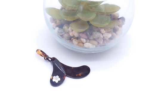 二枚重ねのバラフしずく形タイプの鼈甲パーツに可愛い白蝶貝を一花取り付けました。ユラユラと揺れる二枚重ねにアクセントとしての蝶貝が貴女の胸元を華やかに!年齢問わずにご使用頂けますので娘さんとのシェアも素敵!また別売りのスピネルチェーンと合わせて頂けますとより一層大人カワイイを演出出来ます。天然素材のオーガニックコラボをお楽しみ下さい!お値段もリーズナブルに設定していますのでこの機会に是非お買い求めください。商品はこちらの梱包にて大切に発送致します。天然素材の為、色目やサイズ感は多少異なる場合がございます。※べっ甲及び琥珀等の天然素材はすべて本物です。