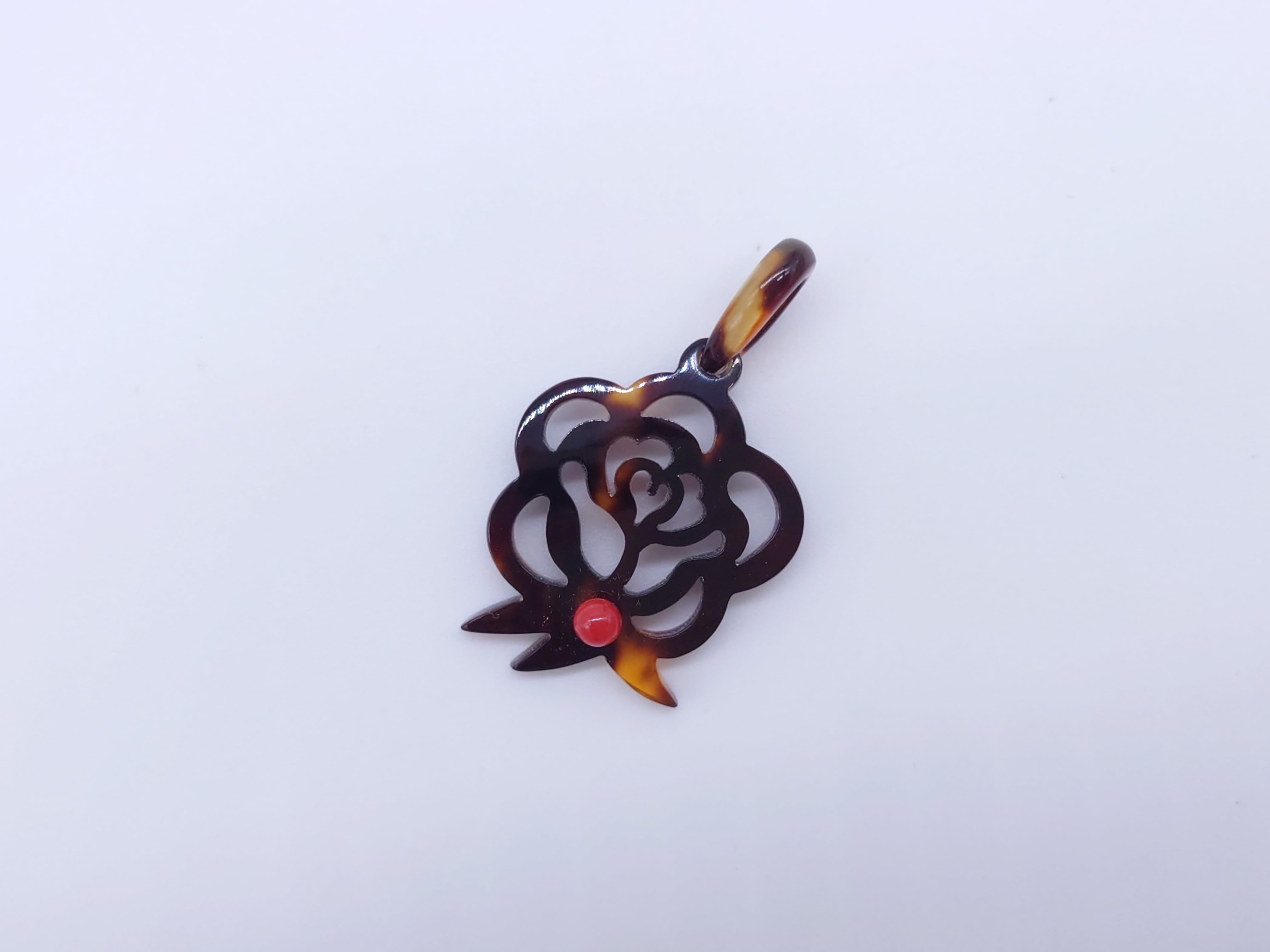 バラフべっ甲に薔薇の透かしを施した職人の技が光るペンダント。そこに珊瑚の丸玉を乗せてアクセントを着けたので存在感のあるペンダントに仕上がっています。親子でシェアされても素敵!10箇所も透かしておりとても手間暇のかかった商品ですので是非、本物の良さを味わってください。商品はこちらの梱包にて大切に発送致します。天然素材の為、色目やサイズ感は多少異なる場合がございます。※べっ甲及び琥珀等の天然素材はすべて本物です。