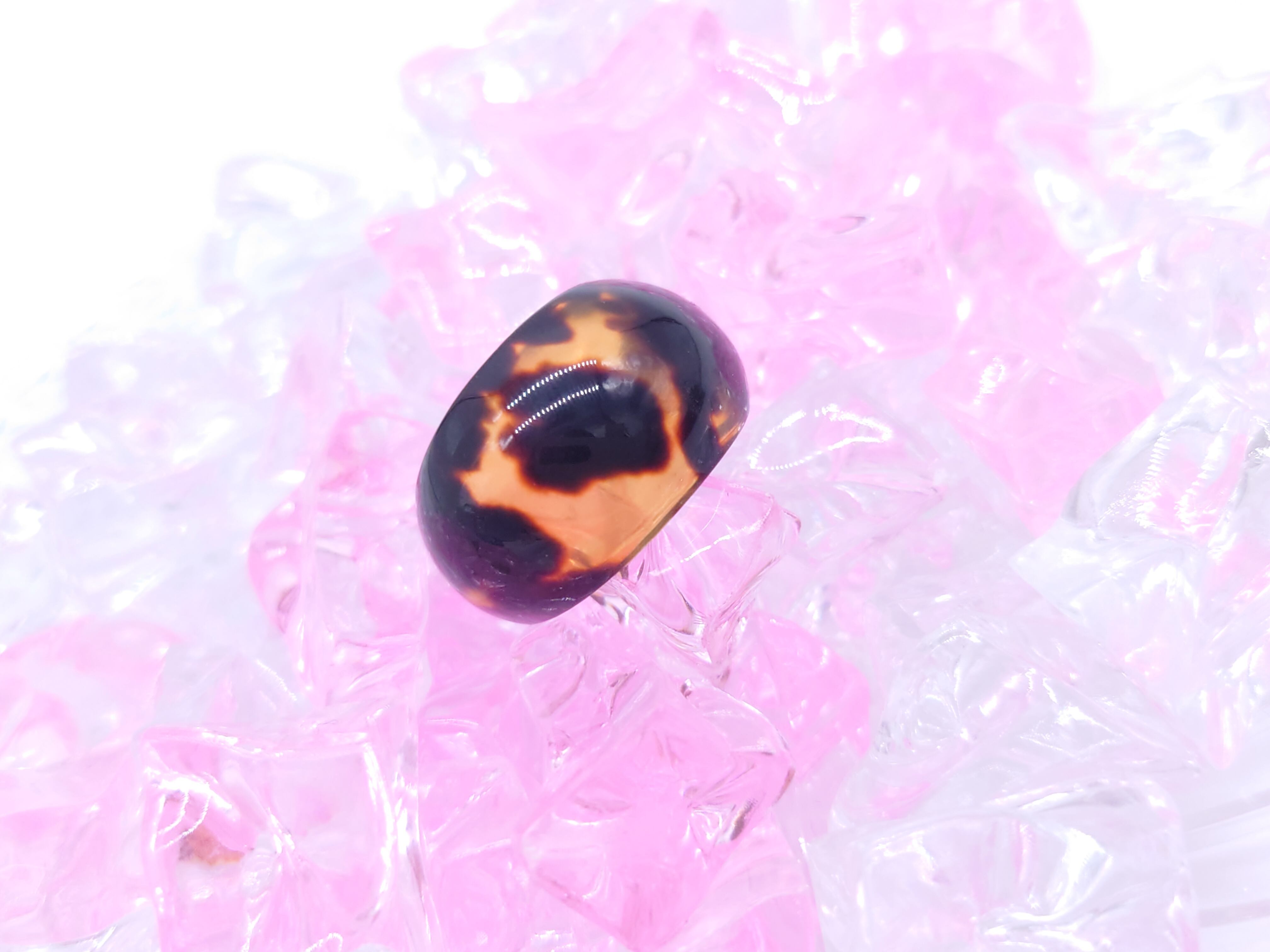 C型状の鼈甲パーツにアズキチェーンを取り付けてリングに作成しました。面白いタイプのデザインですので遊び心が有り素敵です。バラフの柄も上バラフを使用しており、とても上品に仕上がっています。見た目よりも指にフィットし着けやすいリングになっております。カジュアル、フォーマル、どちらにも合わせて頂けるリングです。リング幅もしっかりしておりボリュームがあります!現品限りの商品ですのでお早目に!商品はこちらの梱包にて大切に発送致します。天然素材の為、色目やサイズ感は多少異なる場合がございます。※べっ甲及び琥珀等の天然素材はすべて本物です。