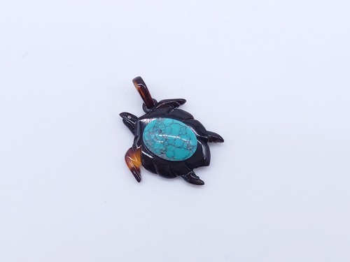 べっ甲で作成されたカワイイカメにターコイズオーバルタイプを甲羅に見立てて取り付けました。斜めにユラユラと胸元で揺れまるで泳いでいる様。最近ではこのタイプのターコイズが輸入出来なく値段も高騰しているため最後の一点になる商品です。以前は沢山生産作成していましたが良く売れていた商品だけに残念です。カジュアルスタイルに良く似合いとってもキュート!最後の一点ですので絶対お買い得です。プレゼントにも喜ばれること間違いなし!当ショップオススメのペンダント!商品はこちらの梱包にて大切に発送致します。天然素材の為、色目やサイズ感は多少異なる場合がございます。※べっ甲及び琥珀等の天然素材はすべて本物です。