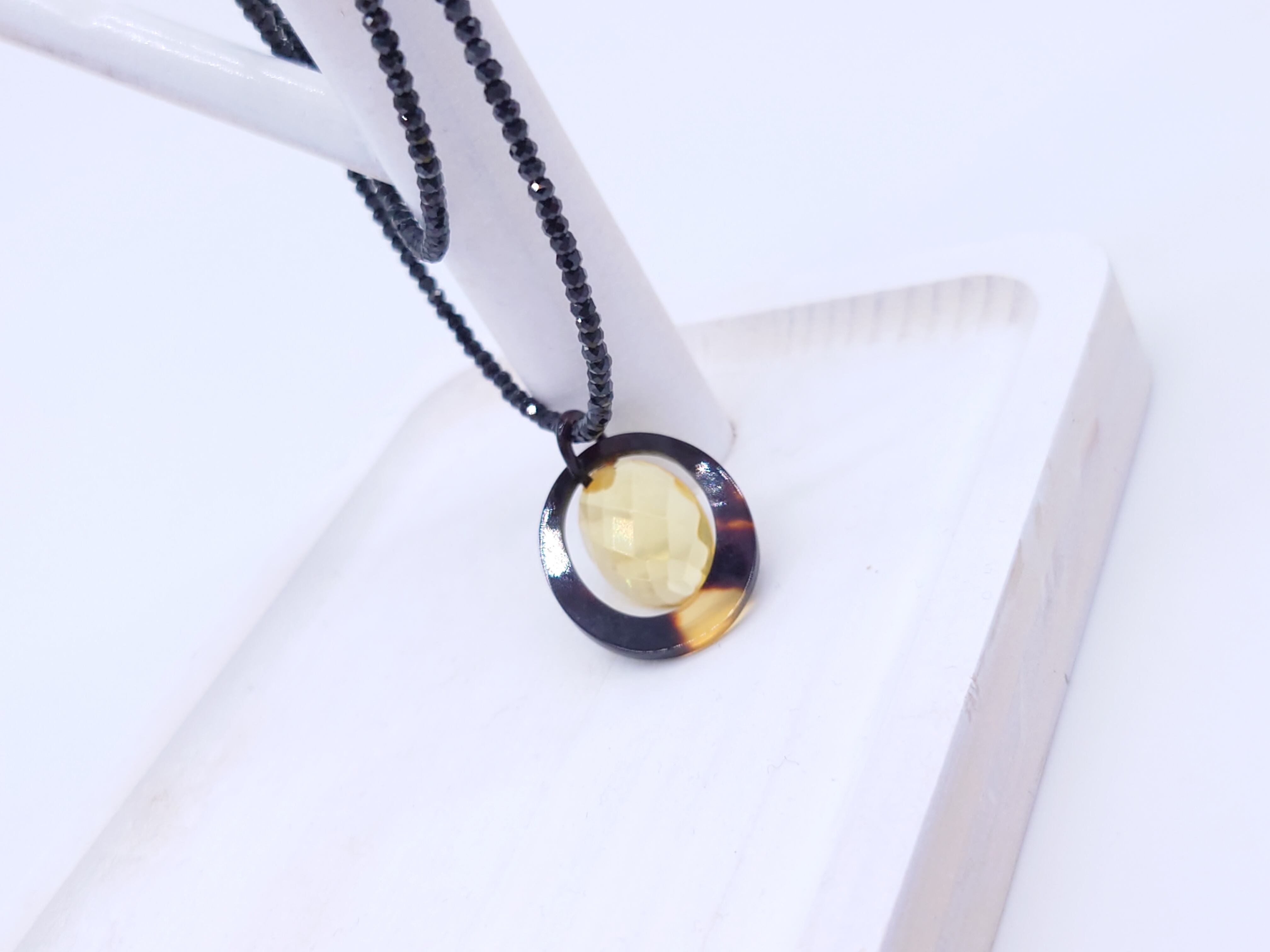 ●説明 本べっ甲 バラフ(背甲)使用 本琥珀(レモンカラー、カット仕上げ)使用 スピネルチェーン留め具メッキカギ使用