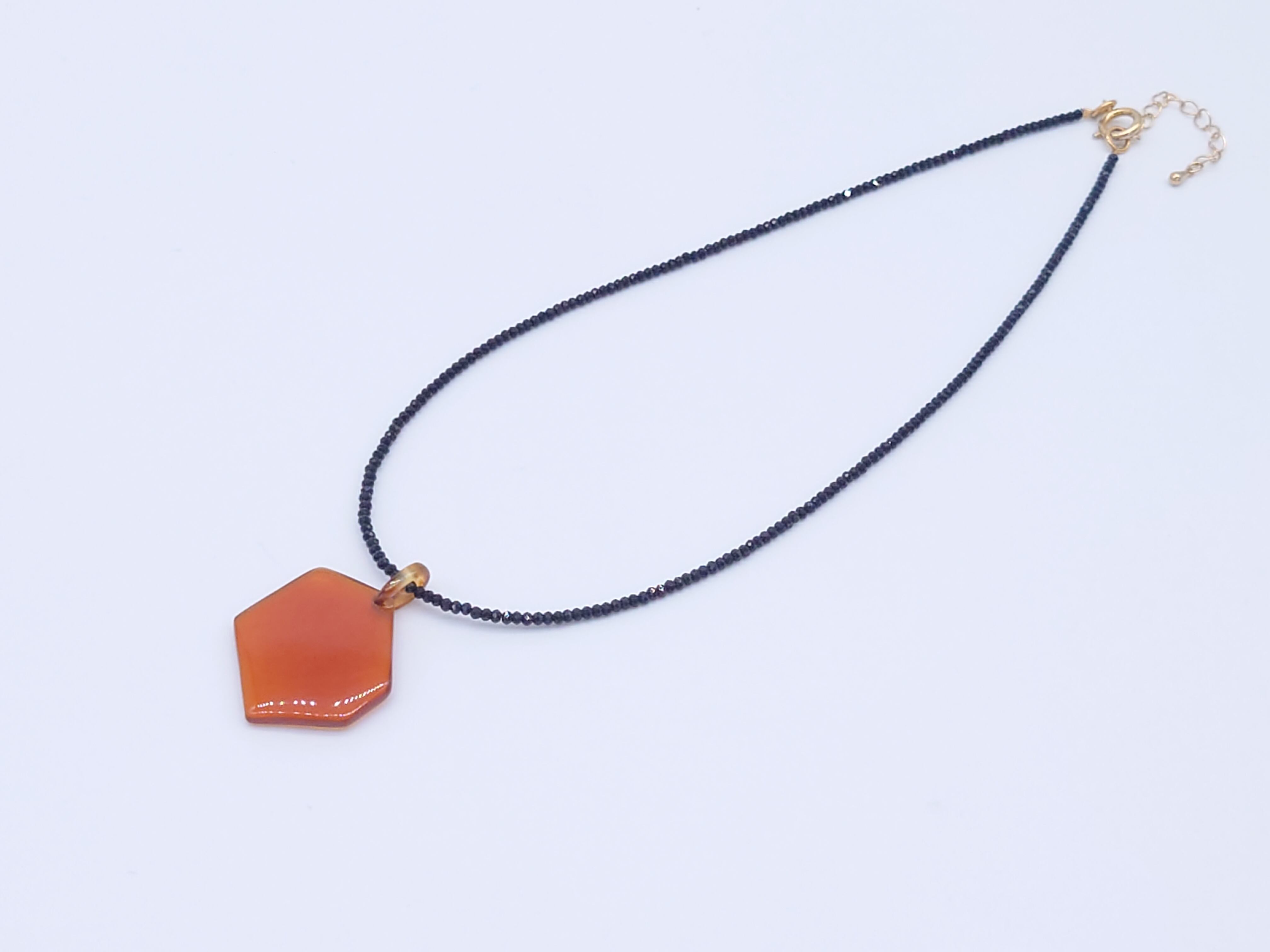 大変希少な白甲を使用したペンダントはべっ甲独特の飴色がとても上品です。プチタイプのサイズ感は気取らずさり気ない大人の魅力を引き出してくれる大人可愛いアイテム!六角形タイプのデザインもシンプルながらに少しこだわりを持ちお洒落なシルエットに仕上げています。少しカット面を変形にすることでシンメトリーなモダンなイメージに作成しました。バチカン部分は飴色に近い背甲を使用しており白甲との一体感をだしています。別売りのスピネルチェーンと合わせても首元でキラキラと素敵に輝きます。別売りべっ甲チェーンと合わせればより一層オーガニックな上品さを味わって頂けます。鼈甲の中でもハイクラスの部位を使用してますので大切な方へのプレゼントにも最適です。この機会に是非白甲の艶感を、本物の良さを味わってください。白甲ではありますがお値段もリーズナブルに設定していますのでお得です。商品はこちらの梱包にて大切に発送致します。天然素材の為、色目やサイズ感は多少異なる場合がございます。※べっ甲及び琥珀等の天然素材はすべて本物です。