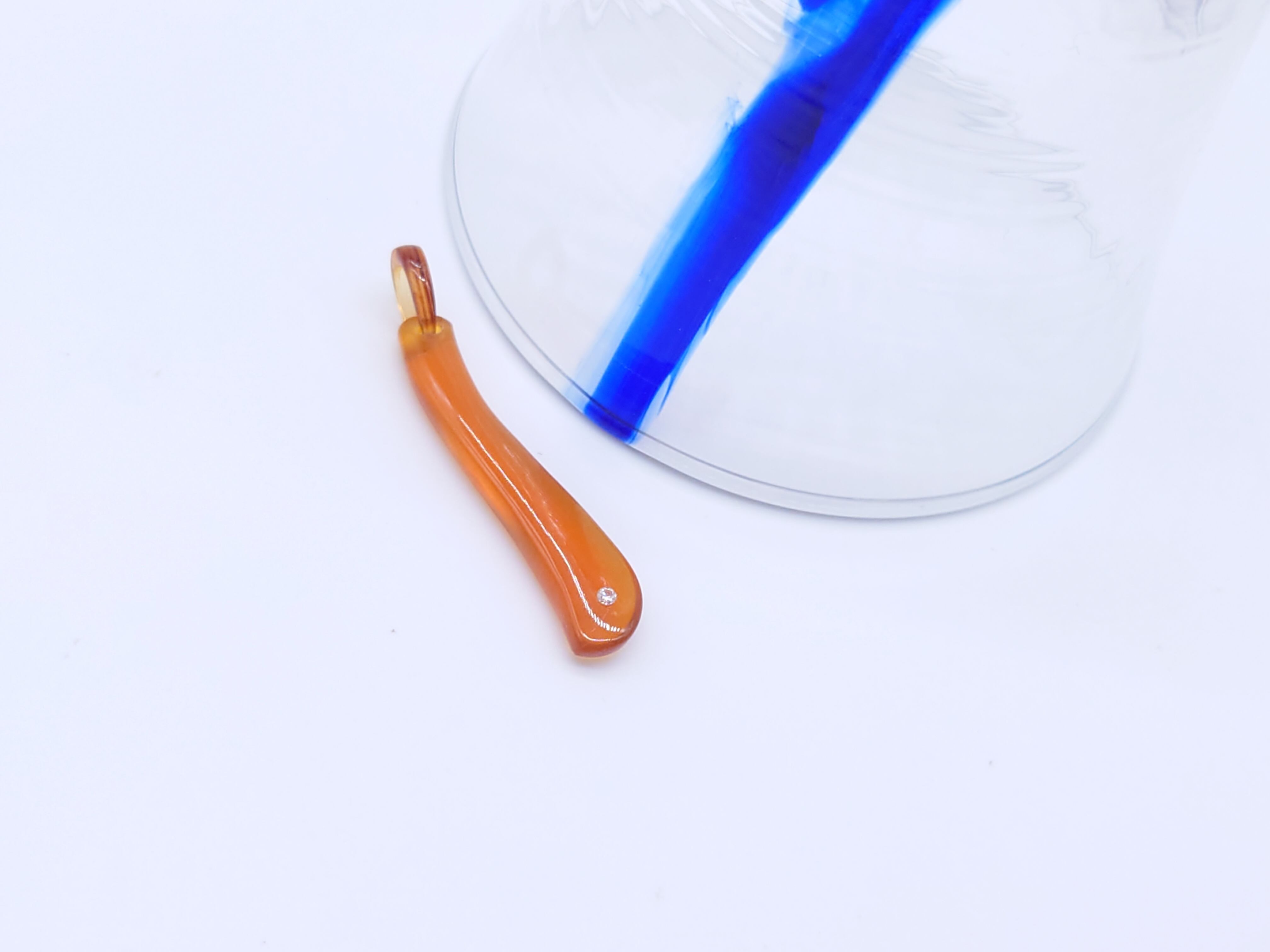 大変希少な白甲を使用したペンダントはべっ甲独特の飴色がとても上品です。プチタイプのサイズ感は気取らずさり気ない大人の魅力を引き出してくれる大人可愛いアイテム!軽くS字にカーブされたラインは女性らしく柔らかい印象を与えます。パーツの下部にはメレダイヤを一石埋め込み高級感アップの本物同士のコラボ!バチカン部分は飴色に近い背甲を使用しており白甲との一体感をだしています。デザインもシンプルながらに少しこだわりを持ちお洒落なシルエットに仕上げています。お手持ち、または別売りのスピネルチェーンと合わせても首元でYラインになり貴女の装いをシャープに演出。フォーマルはもちろん、カジュアルスタイルにもピッタリなアイテムです。自分へのご褒美にいかがでしょうか。お値段もリーズナブルに設定していますのでこの機会に是非。商品はこちらの梱包にて大切に発送致します。天然素材の為、色目やサイズ感は多少異なる場合がございます。※べっ甲及び琥珀等の天然素材はすべて本物です。