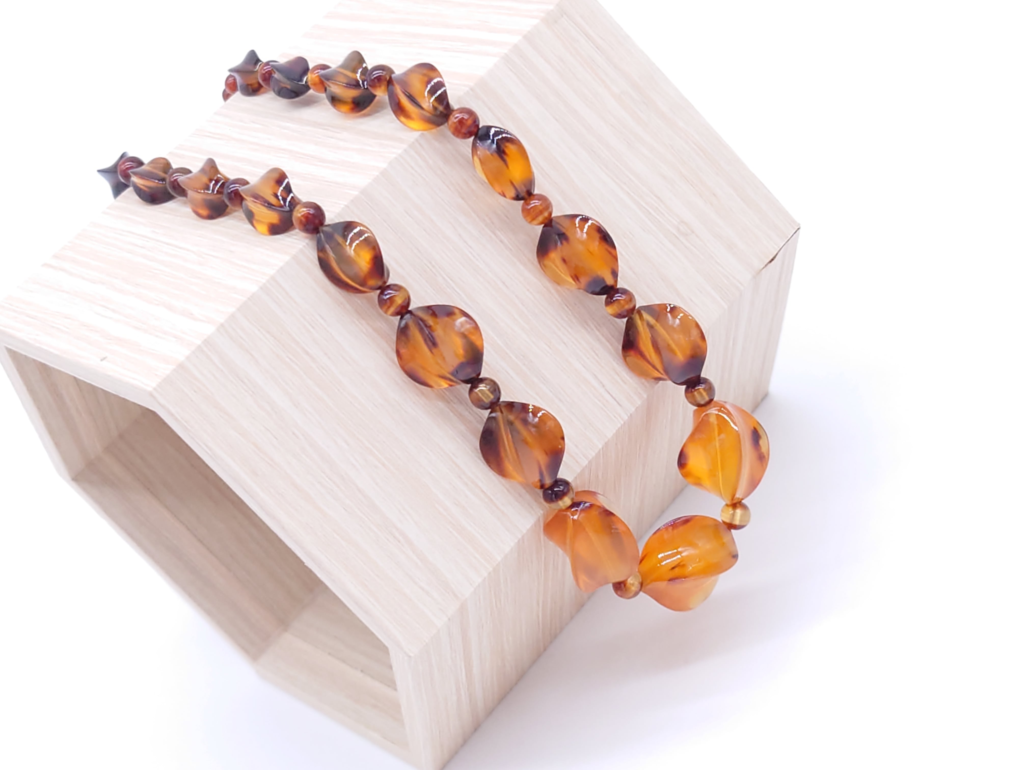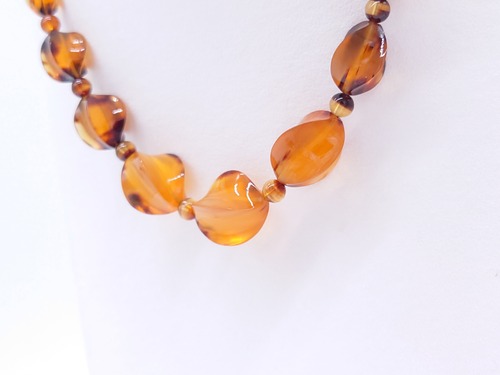 ●サイズ 全長約47?p(ハイネック対応)センターパーツ 横約20ミリ×縦約12ミリ●説明 バラフ(背甲)使用 留具 べっ甲マグネット使用 べっ甲バラフの飴色をふんだんに使用した特上エグリ仕上げした贅沢なネックレス。白甲に近いほどのセンターパーツの色目は作成するのに大変時間がかかりますので希少価値は白甲にも劣りません!ここまでの色目なのでフォーマルな場所にピッタリなネックレス。会食やパーティー、結婚式などにもぜひ!!べっ甲は同じ柄が出来ないため世界に一つだけの貴女のオーガニックジュエリーを味わってください。マグネット式の為、脱着も楽で軽くて肩も凝りません。大切な方へのプレゼントにも最適です。商品はこちらの梱包にて大切に発送致します。天然素材の為、色目やサイズ感は多少異なる場合がございます。※べっ甲及び琥珀等の天然素材はすべて本物です。