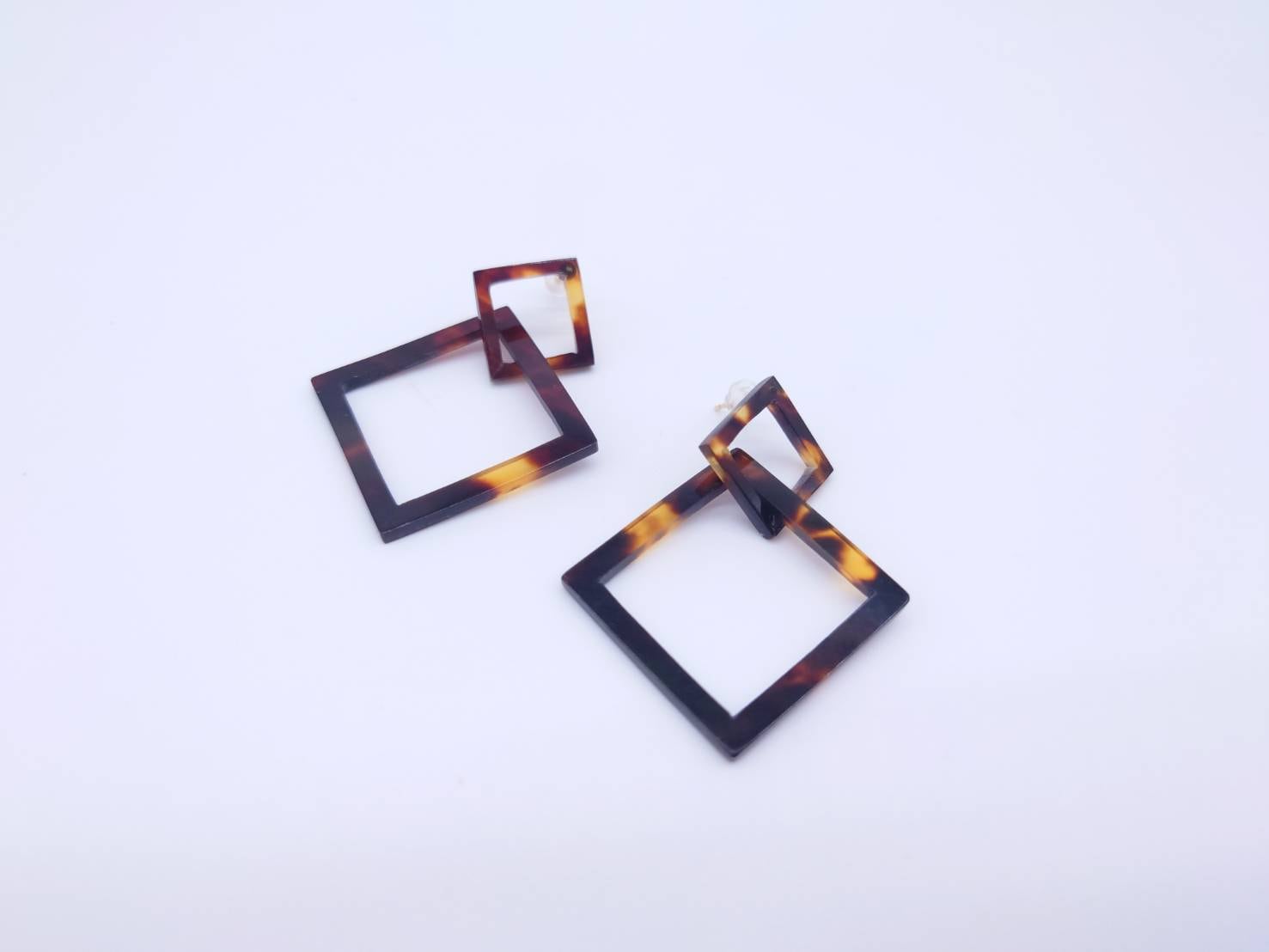 上部スクエア型べっ甲パーツに直結金具を取り付け、そのパーツに大き目スクエアパーツを通してぶら下げました。デザインもお顔周りがシャープに見えるので小顔効果あり!ぶら下がりタイプなので耳元でプラプラと揺れスクエアパーツのべっ甲の艶感が素敵。スクエアコンビのシンプルデザインが飽きがこず大人可愛いピアス。バラフの良さを味わって頂けるアイテムです。カジュアル、フォーマルのどちらにも良く似合います。四角ダブルのバラフ。べっ甲はとても軽いため耳への負担も軽く着けていることを忘れるくらいですのでお手軽にご使用いただけます。18金使用の為アレルギーの方にも安心してご使用いただけます。本物の良さを味わってください。大切な方へのプレゼントにも最適です。商品はこちらの梱包にて大切に発送致します。天然素材の為、色目やサイズ感は多少異なる場合がございます。※べっ甲及び琥珀等の天然素材はすべて本物です。通常希望小売価格¥23,000