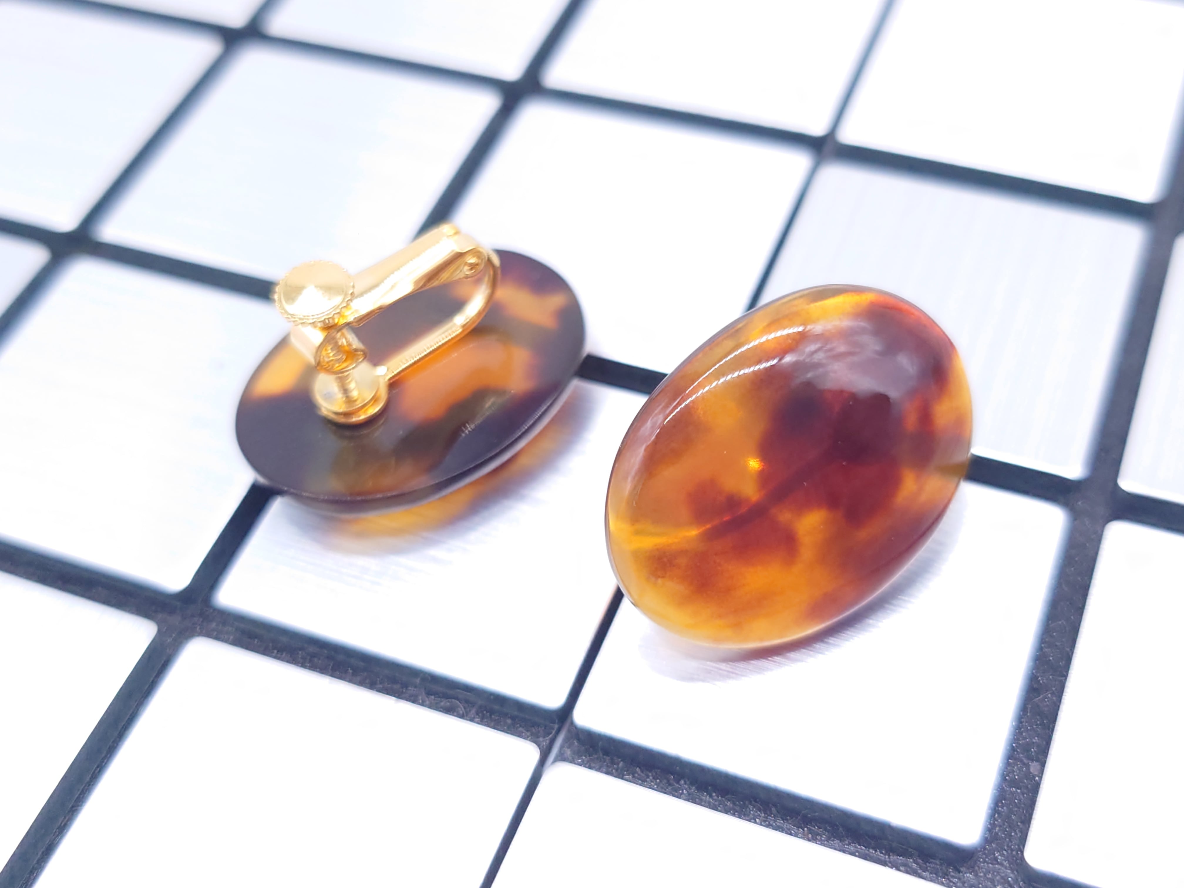 シンプルなオーバルタイプの飽きの来ないデザイン。綺麗なバラフの柄がべっ甲らしさを演出。中ぶりサイズで年中着けやすく便利アイテム。是非とも手作りの温かみや手触り、着け心地を実感して欲しいイヤリングです!べっ甲はとても軽いため重さを感じず疲れにくいです。どのようなお洋服にも合わせやすく便利アイテムです。カジュアル、フォーマルどちらにも良く合います。チタン製ピアスへの加工も無償でさせて頂きますのでメール、メッセージでお伝えください。商品はこちらの梱包にて大切に発送致します。天然素材の為、色目やサイズ感は多少異なる場合がございます。※べっ甲及び琥珀等の天然素材はすべて本物です。通常希望小売価格¥28,000