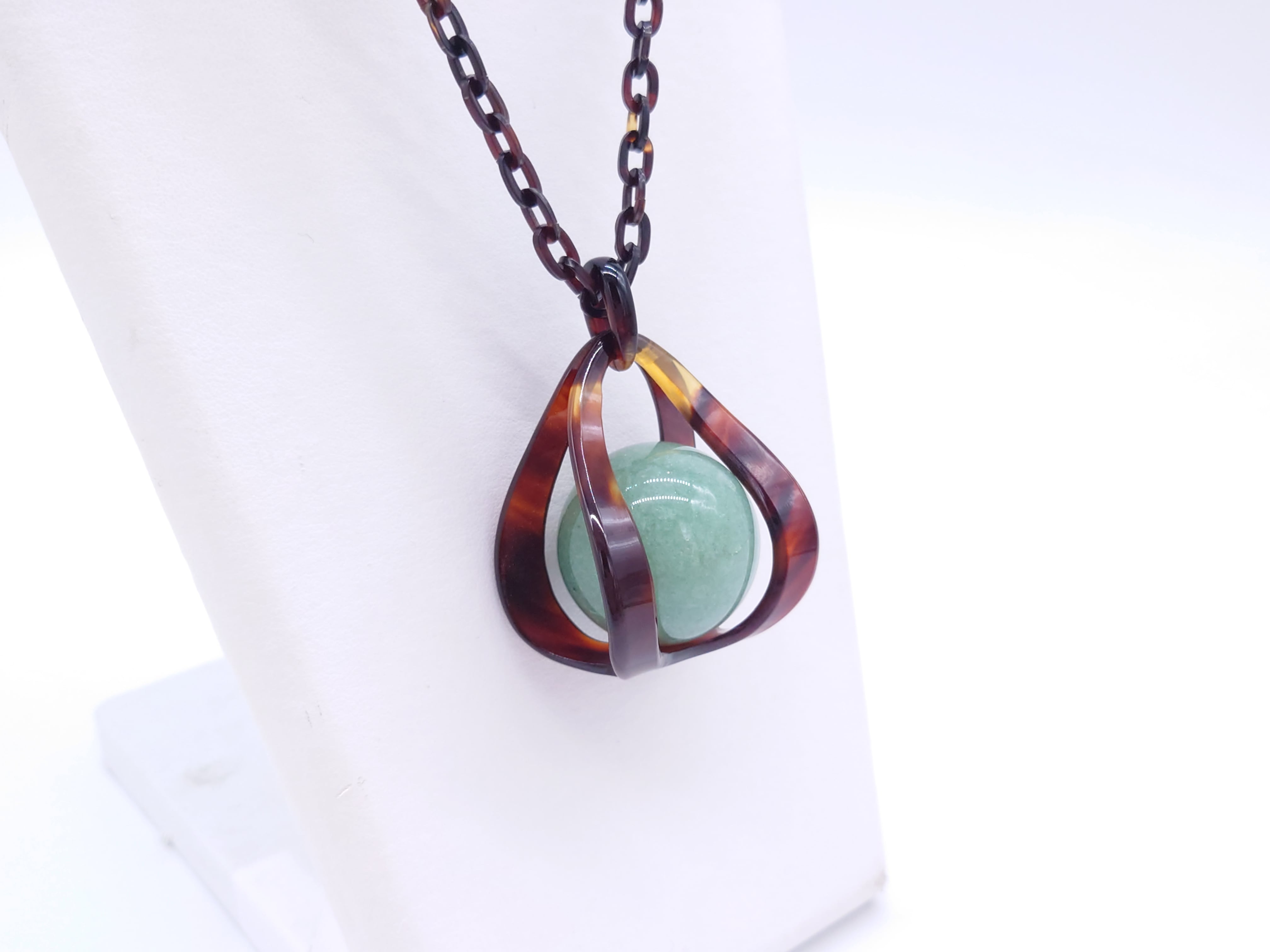 べっ甲の板に透かしをして蒸気で曲げる技法でカゴ状に作成、そのカゴのべっ甲に大きなアベンチュリンの玉を入れ込んだ手間暇のかかるペンダントは大振りで存在感があり素敵!オーガニックな良さを存分に味わって頂けるアイテムです。アベンチュリンのグリーンカラーが素敵なペンダント。別売りのべっ甲チェーンを合わせてもらえると一層豪華で上品に仕上がります。お値段もリーズナブルに設定していますのでこの機会に是非!お友達とのご旅行などにも活躍すること間違いなし!是非、自分へのご褒美にもお買い求めください。商品はこちらの梱包にて大切に発送致します。天然素材の為、色目やサイズ感は多少異なる場合がございます。※べっ甲及び琥珀等の天然素材はすべて本物です。通常希望小売価格¥38,000