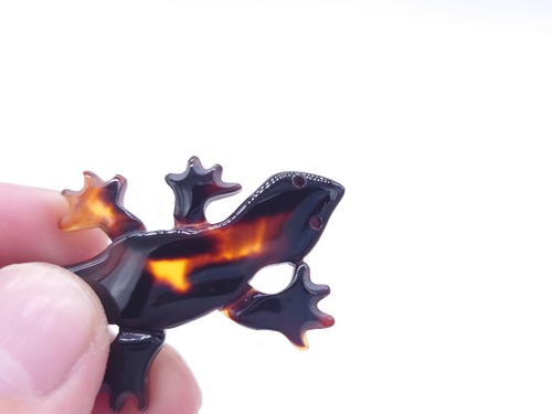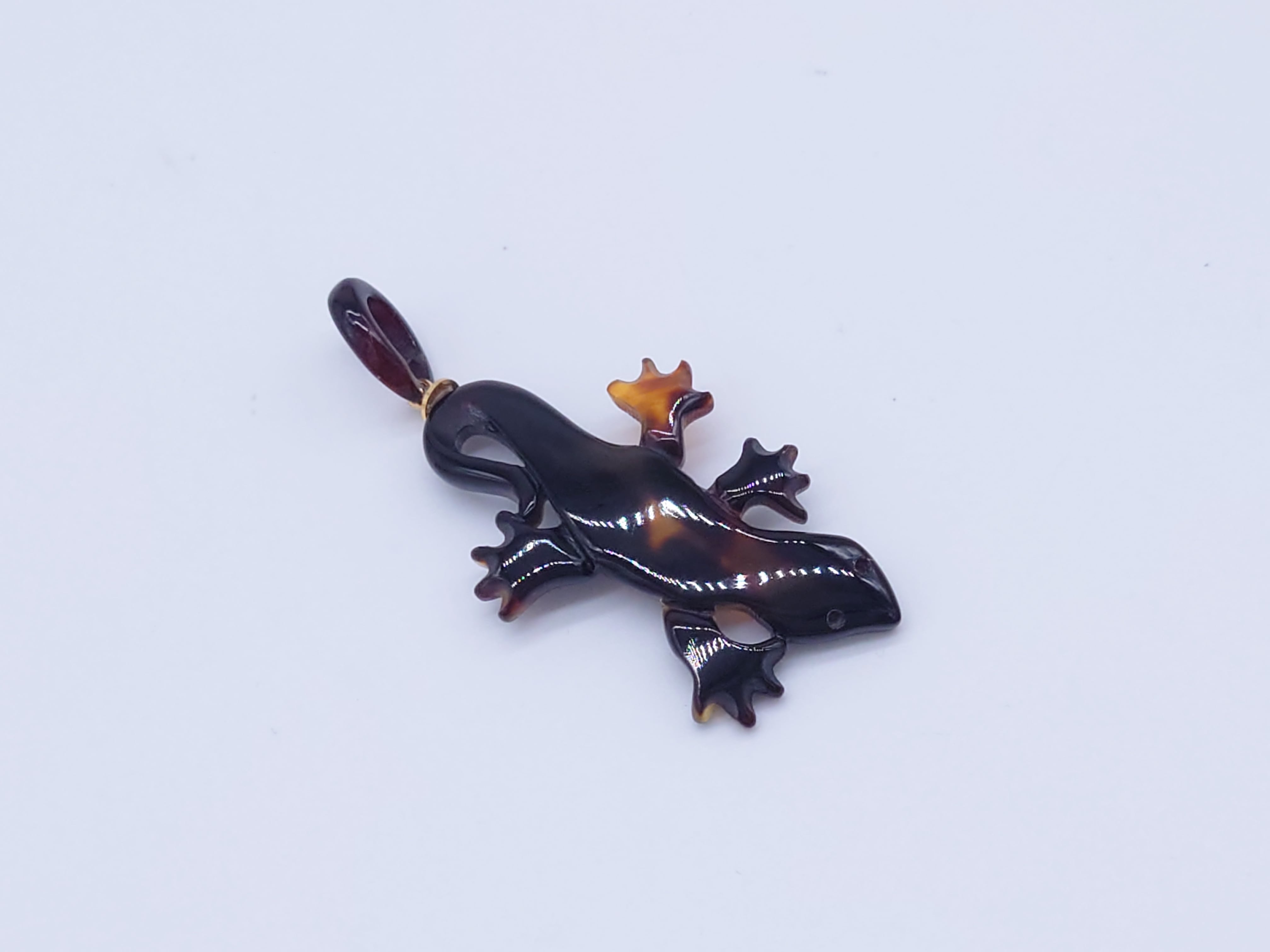 ●説明 本べっ甲 バラフ (背甲)使用 トカゲモチーフの可愛いペンダント。