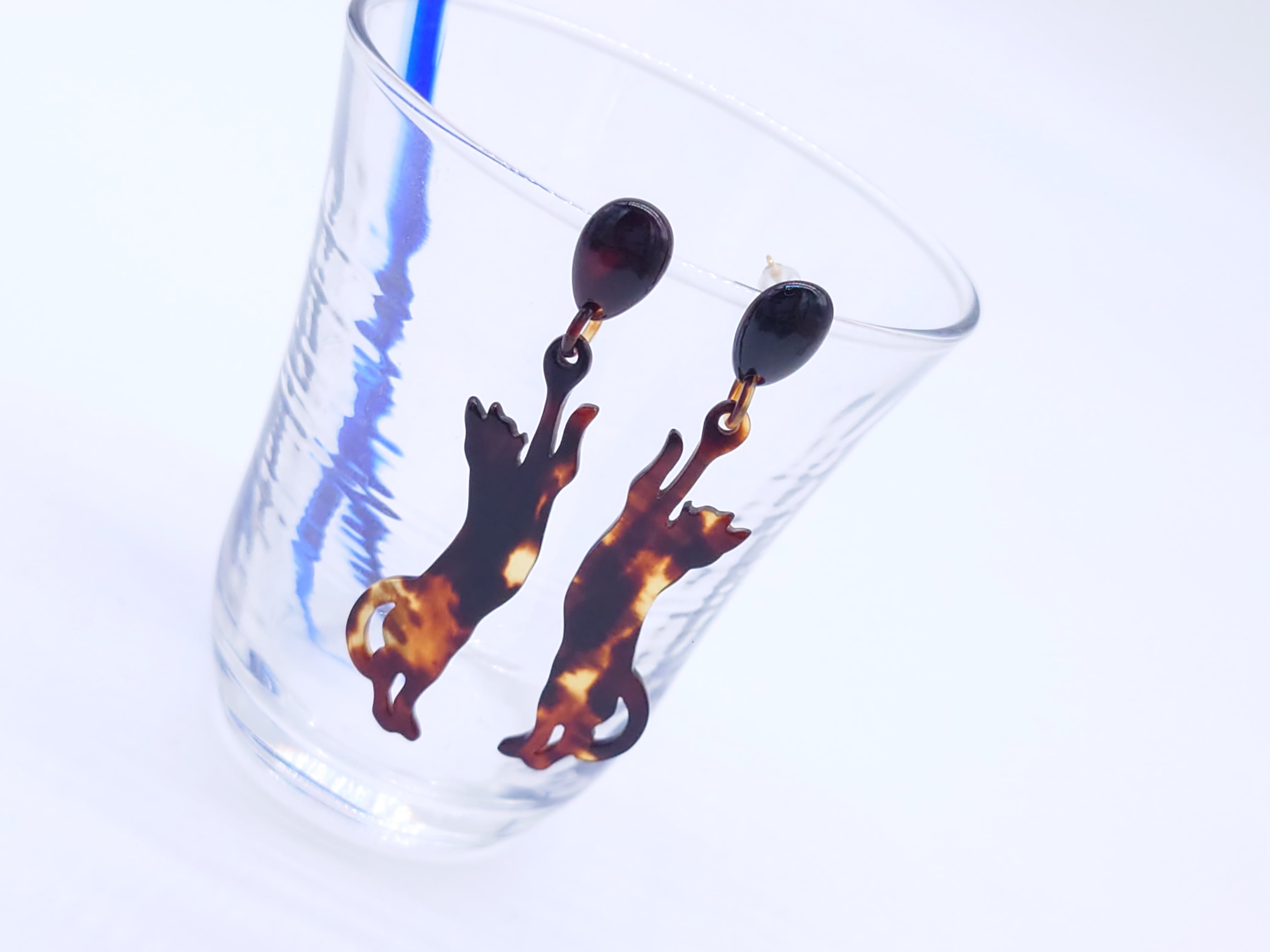可愛いネコちゃんパーツを上部べっ甲雫にぶら下げました。ジャンプしている様な躍動感あるネコちゃんは耳元でプラプラと揺れてとてもキュート。ネコちゃん好きにはたまらない一品です。猫のシルエットも細部にまでこだわり手仕上げされた職人の技が光る一品です。金メッキされていますがチタン製のニッケルフリーのためアレルギーの方にも安心してご使用頂けます。べっ甲、琥珀はとても軽いため耳への負担も軽く着けていることを忘れるくらいですのでお手軽にご使用いただけます。本物の良さを味わってください。大切な方へのプレゼントにも最適です。商品はこちらの梱包にて大切に発送致します。天然素材の為、色目やサイズ感は多少異なる場合がございます。※べっ甲及び琥珀等の天然素材はすべて本物です。通常希望小売価格¥14,500
